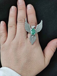 925 Ayar Gümüş El İşi Kök Zümrüt Taşlı Anka Kuşu Yüzük 925 Ayar Gümüş El İşi Kök Zümrüt Taşlı Anka Kuşu Yüzük ANKYZK تک سایز