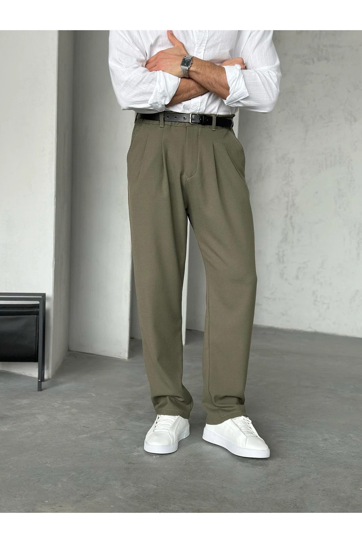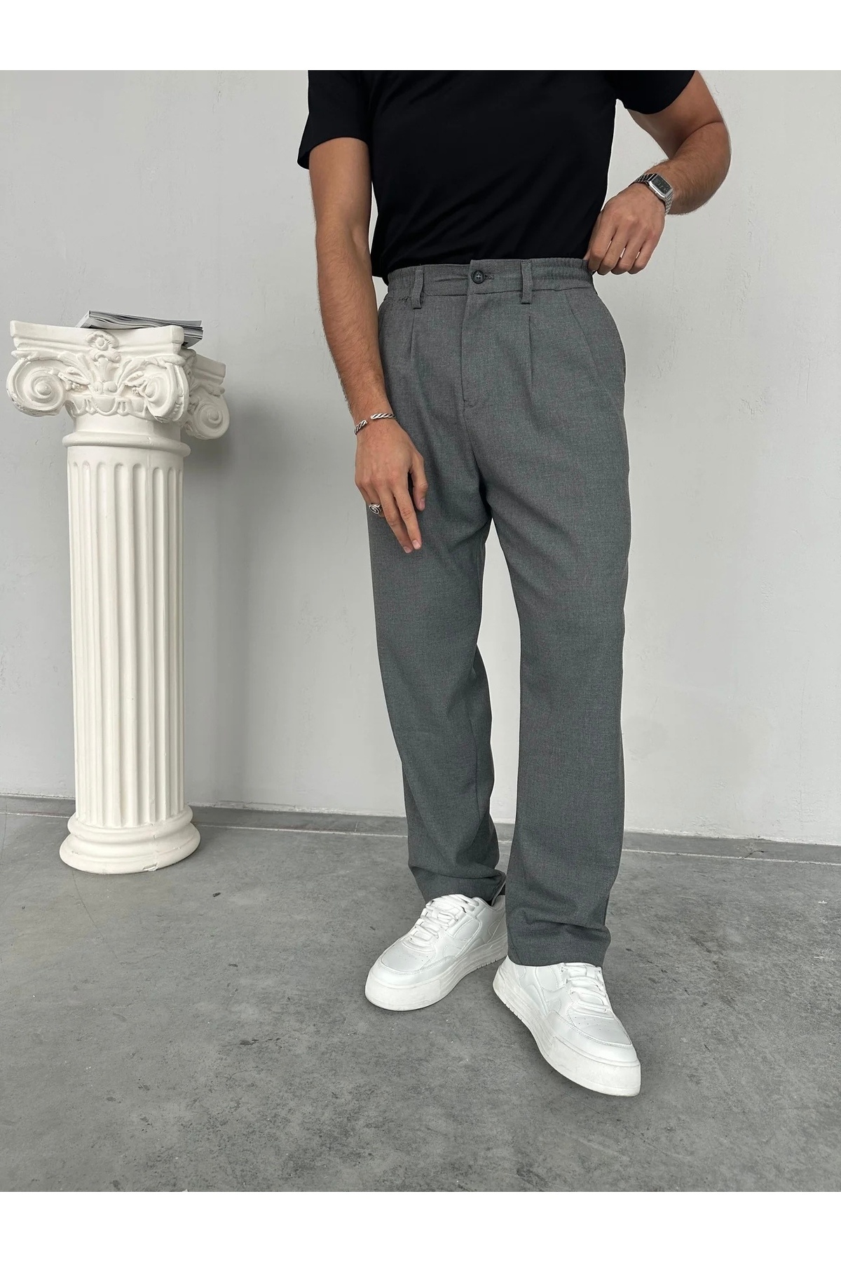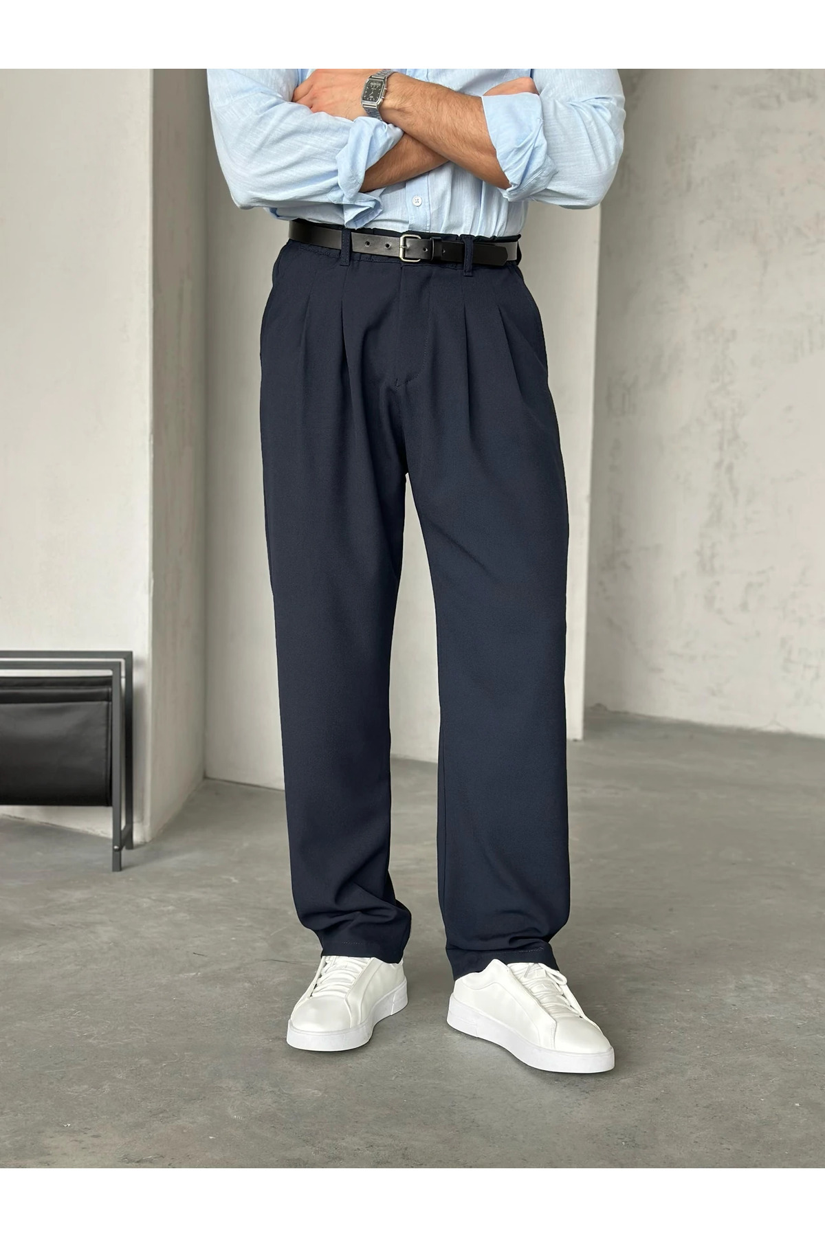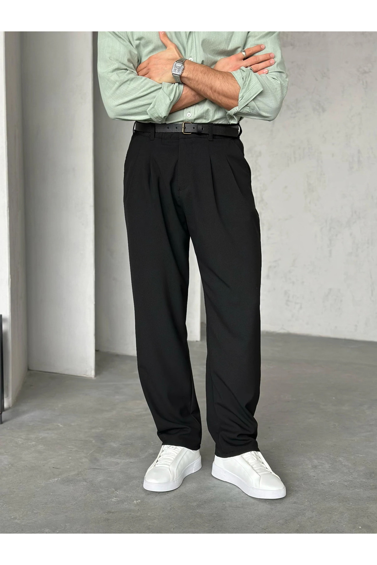 Erkek Siyah Pileli Baggy Kumaş Pantolon Erkek Siyah Pileli Baggy Kumaş Pantolon MOO1074 XL