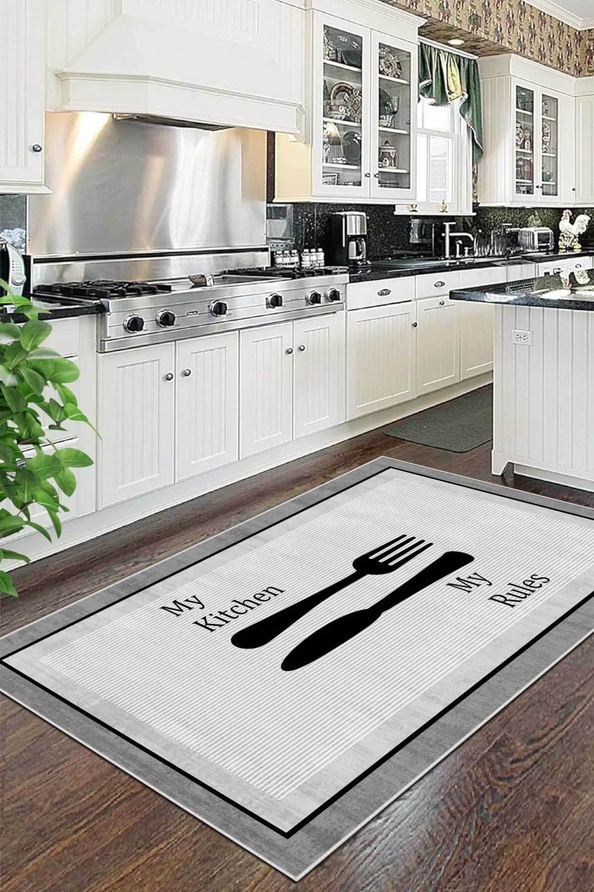 Mutfak Temalı Desen Halı, Leke Tutmaz Yıkanabilir Halı, Dekoratif Mutfak Halısı, Mutfak Halısı Mutfak Temalı Desen Halı, Leke Tutmaz Yıkanabilir Halı, Dekoratif Mutfak Halısı, Mutfak Halısı JC8854-BK 160 x 230