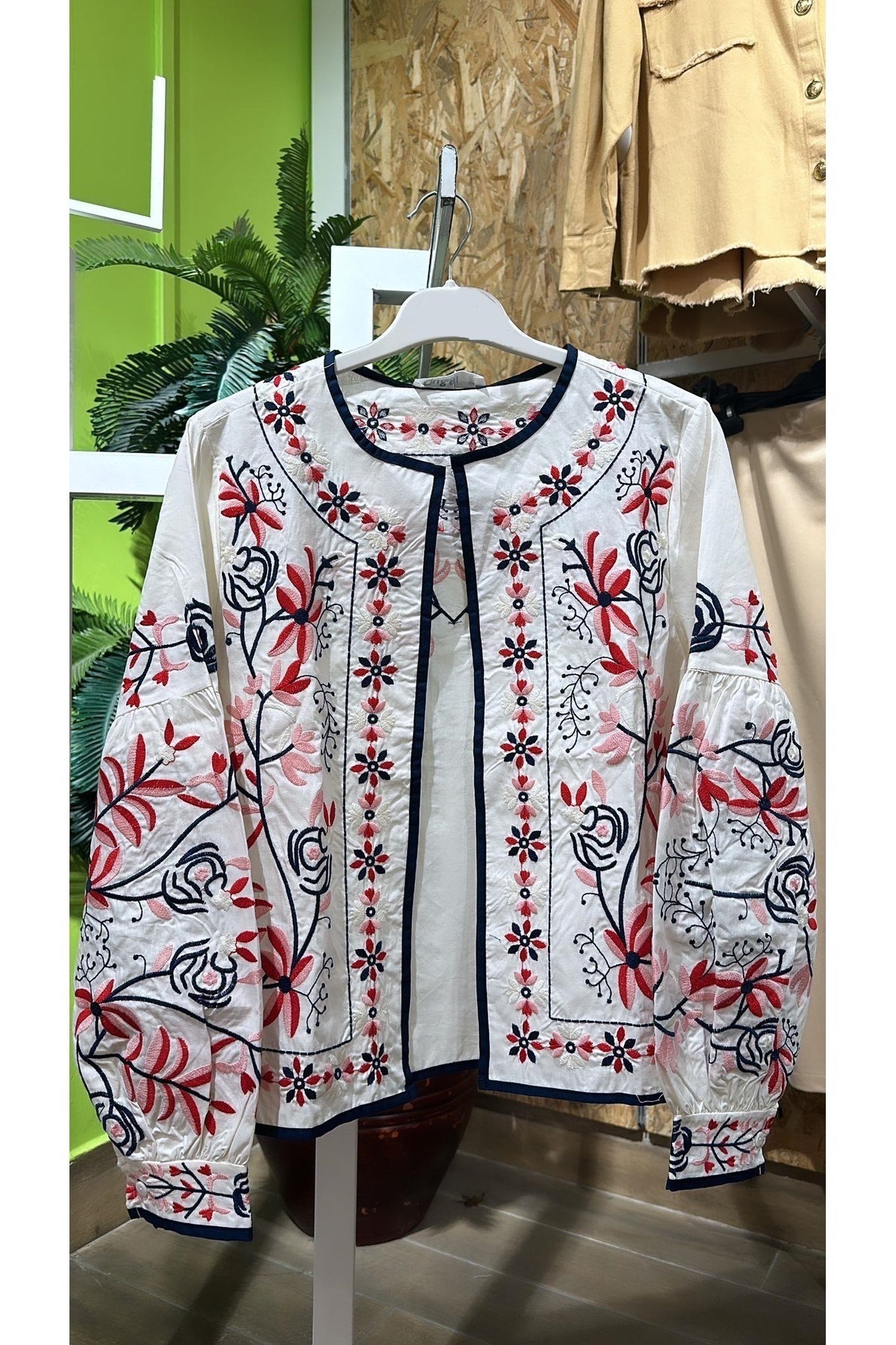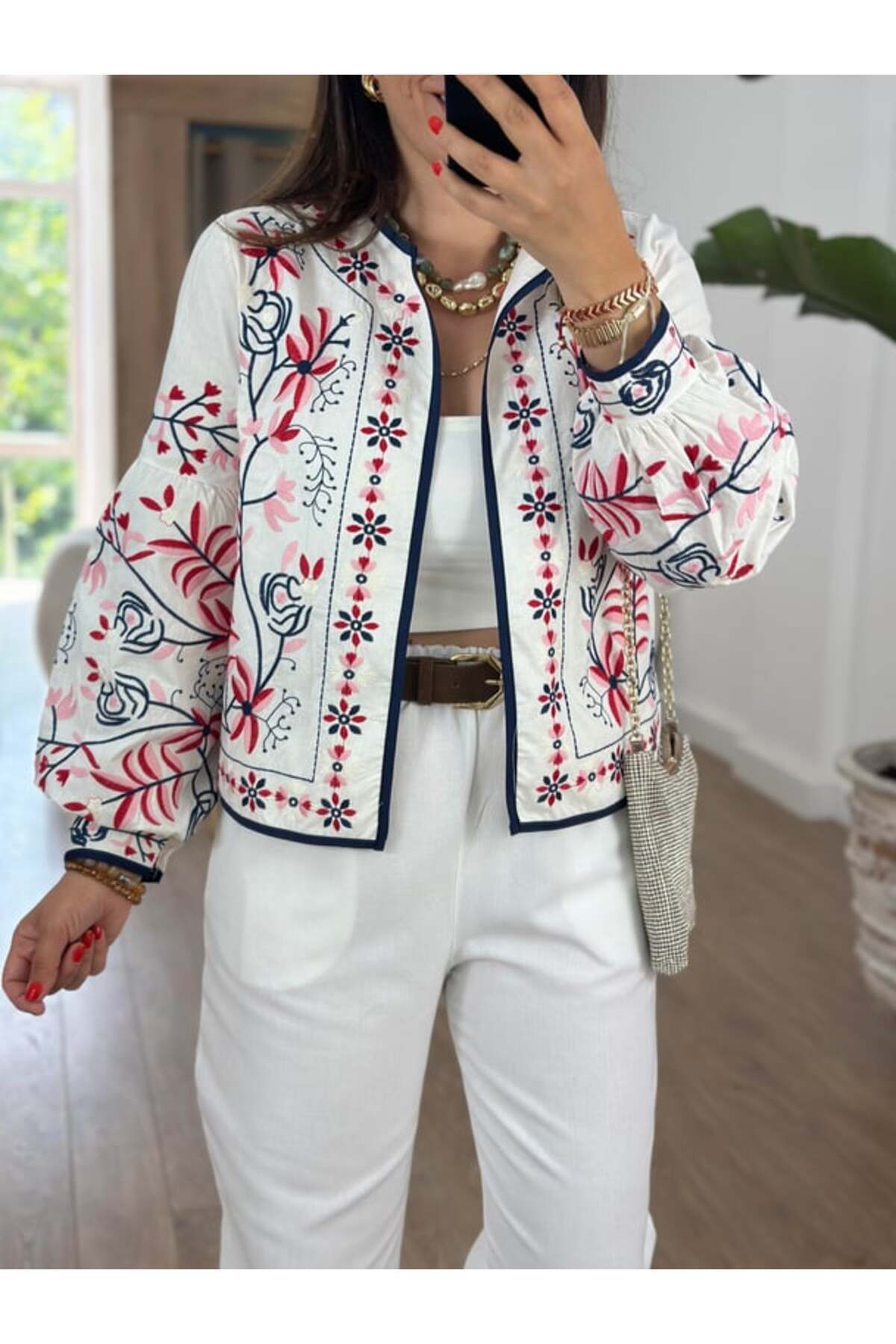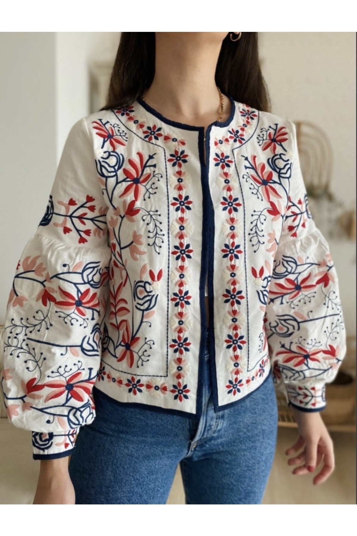 Beyaz Nakışlı Etnik Desen Ceket Beyaz Nakışlı Etnik Desen Ceket LAV00215 L