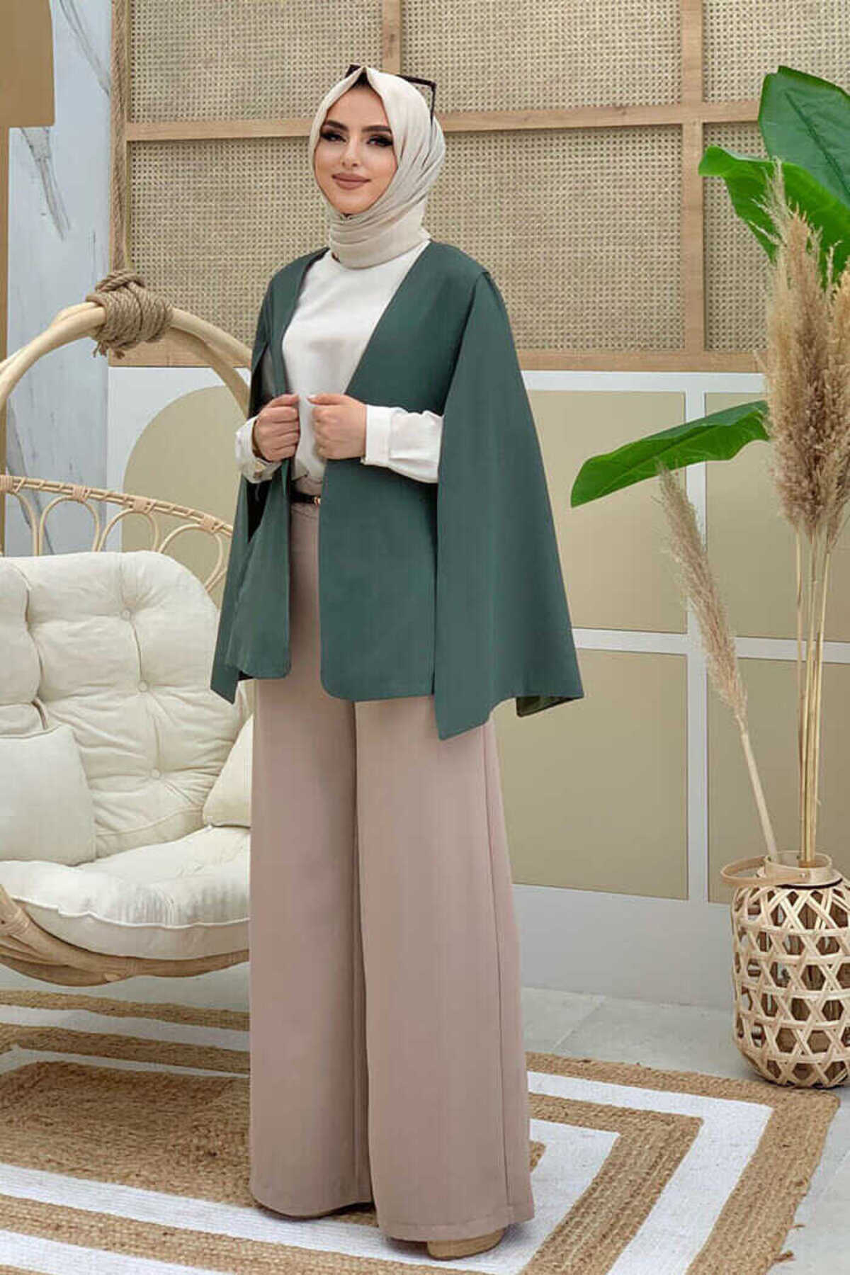 Pelerin Kol Görünümlü Düz Astarlı Ceket 7666 Taş Pelerin Kol Görünümlü Düz Astarlı Ceket 7666 Taş 2788 42