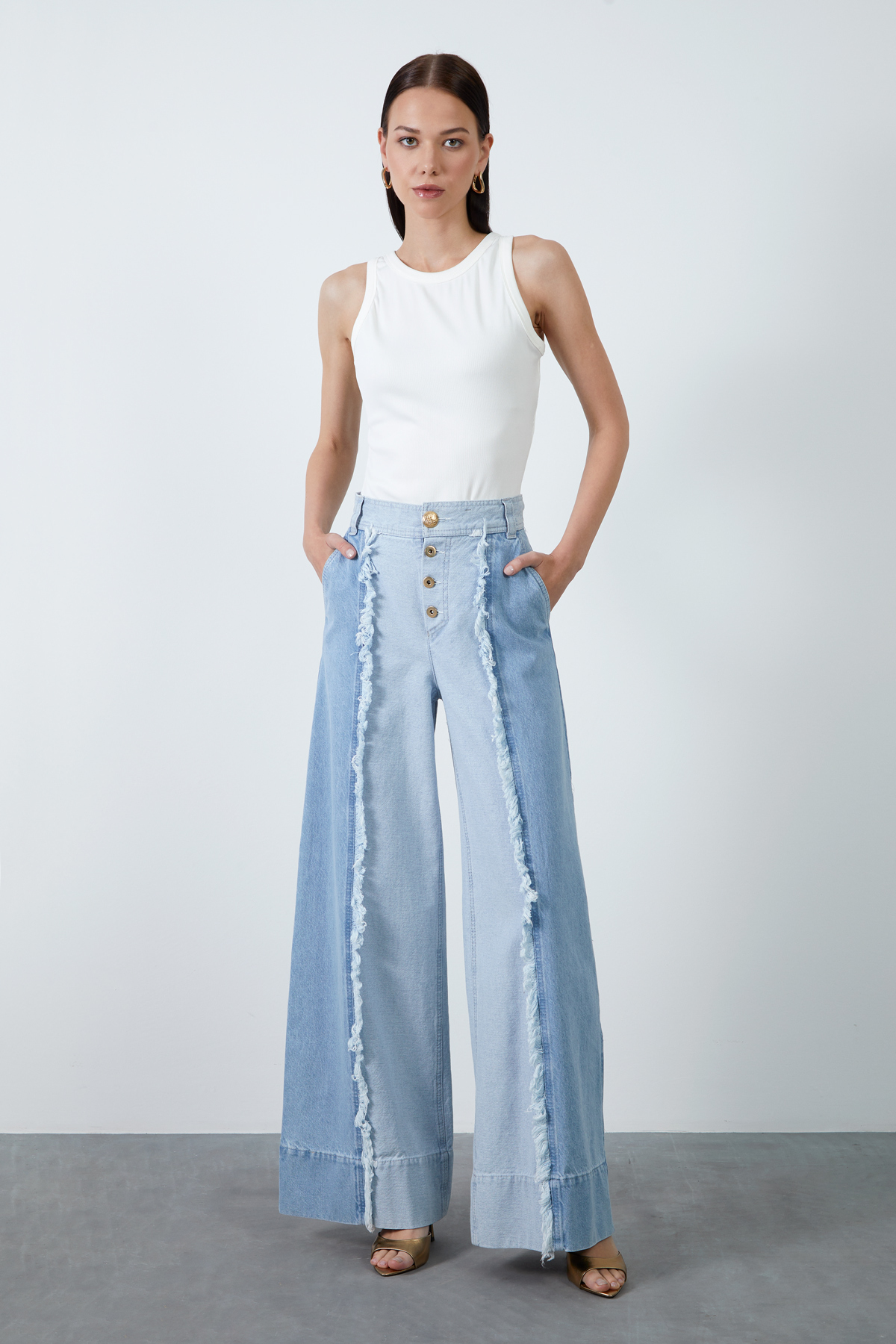 Gümüş Kordon Detaylı Jean Garnili Beli Lastikli Pantolon Gümüş Kordon Detaylı Jean Garnili Beli Lastikli Pantolon M3KM1I0211 46