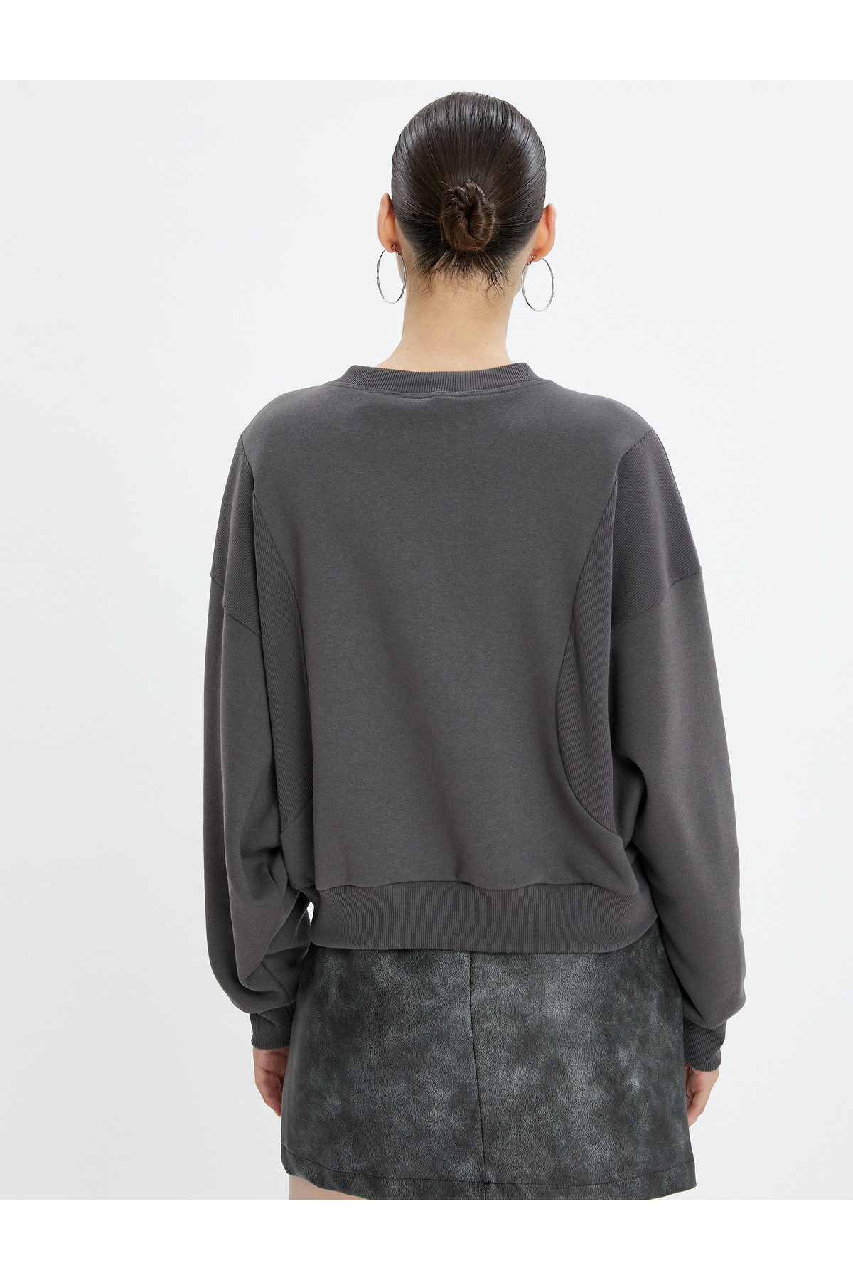 Şardonlu Bisiklet Yaka Sweatshirt Reglan Kollu Ribanalı Şardonlu Bisiklet Yaka Sweatshirt Reglan Kollu Ribanalı 4WAL10146IK XL