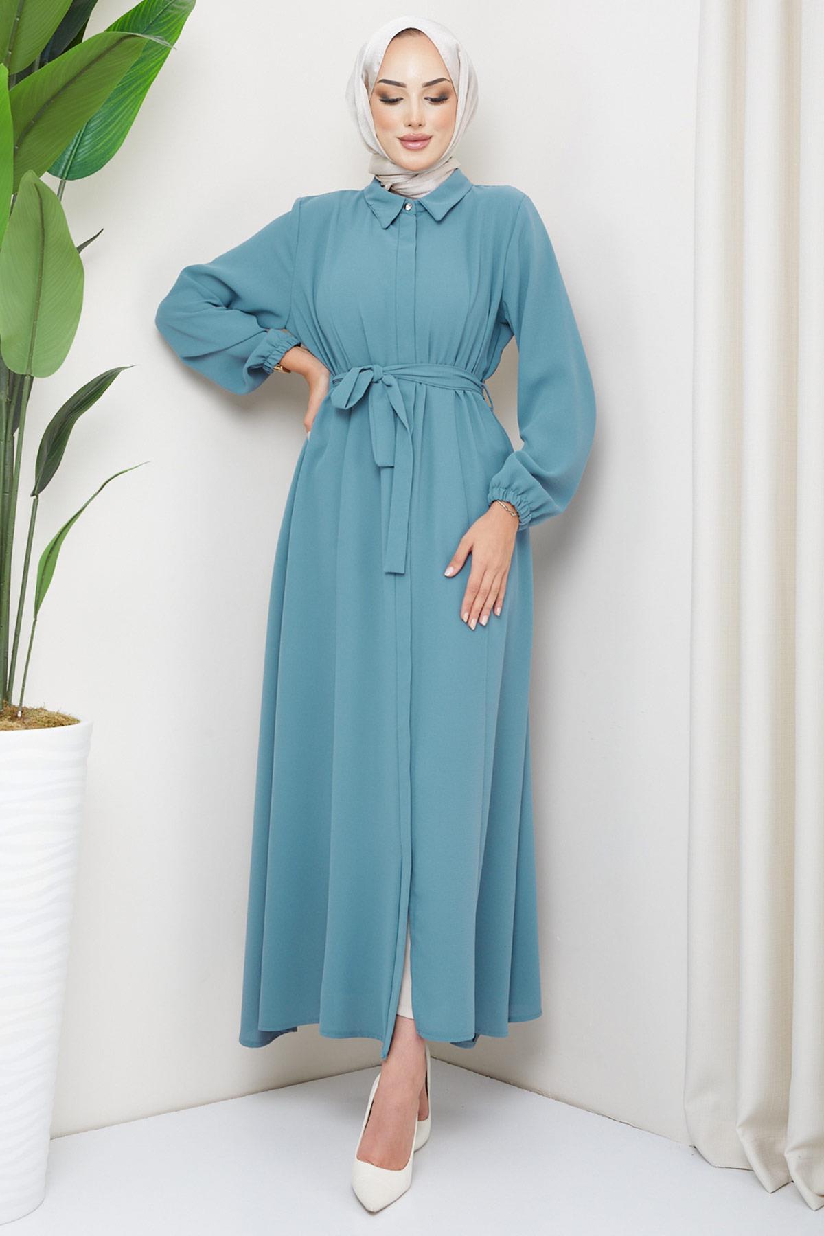 Gömlek Yaka Kuşaklı Ferace Mint HM2253 Gömlek Yaka Kuşaklı Ferace Mint HM2253 52