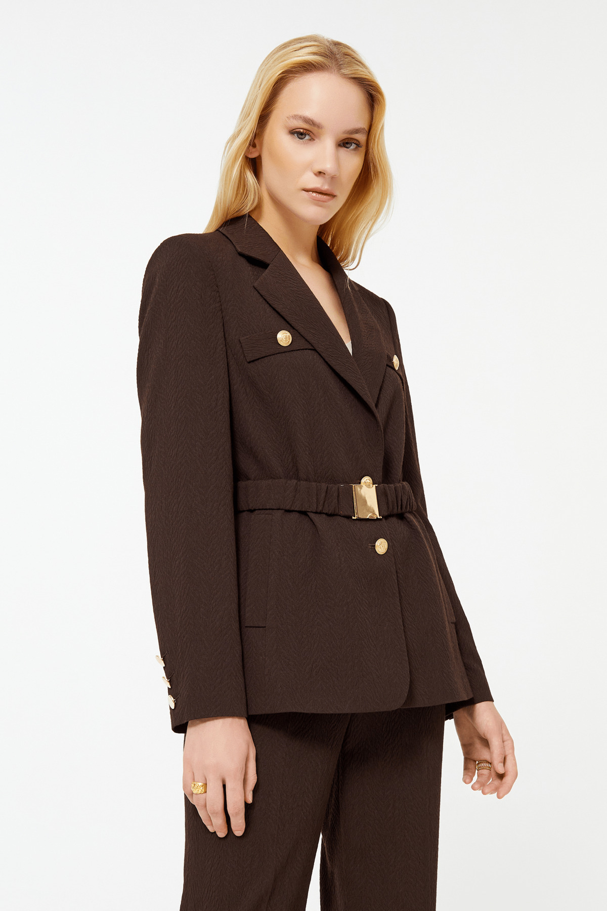 Kemerli Dokulu Klasik Ceket Kemerli Dokulu Klasik Ceket 23K11111Y541 46