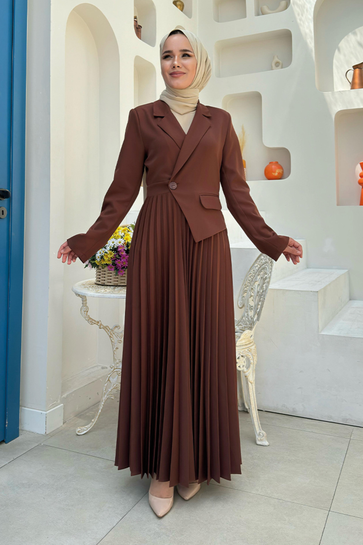 Ceket Görünümlü Eteği Piliseli Elbise 3700 Siyah Ceket Görünümlü Eteği Piliseli Elbise 3700 Siyah 3401 48