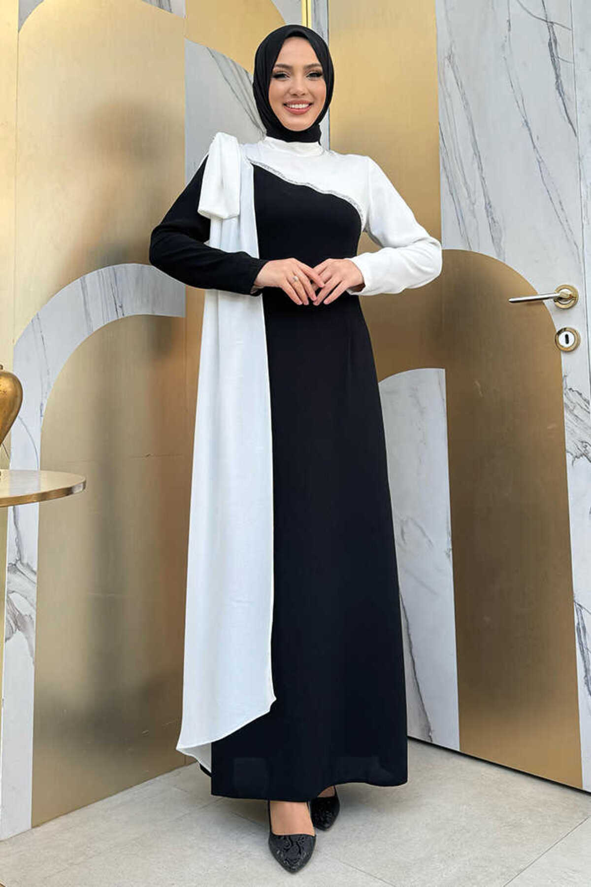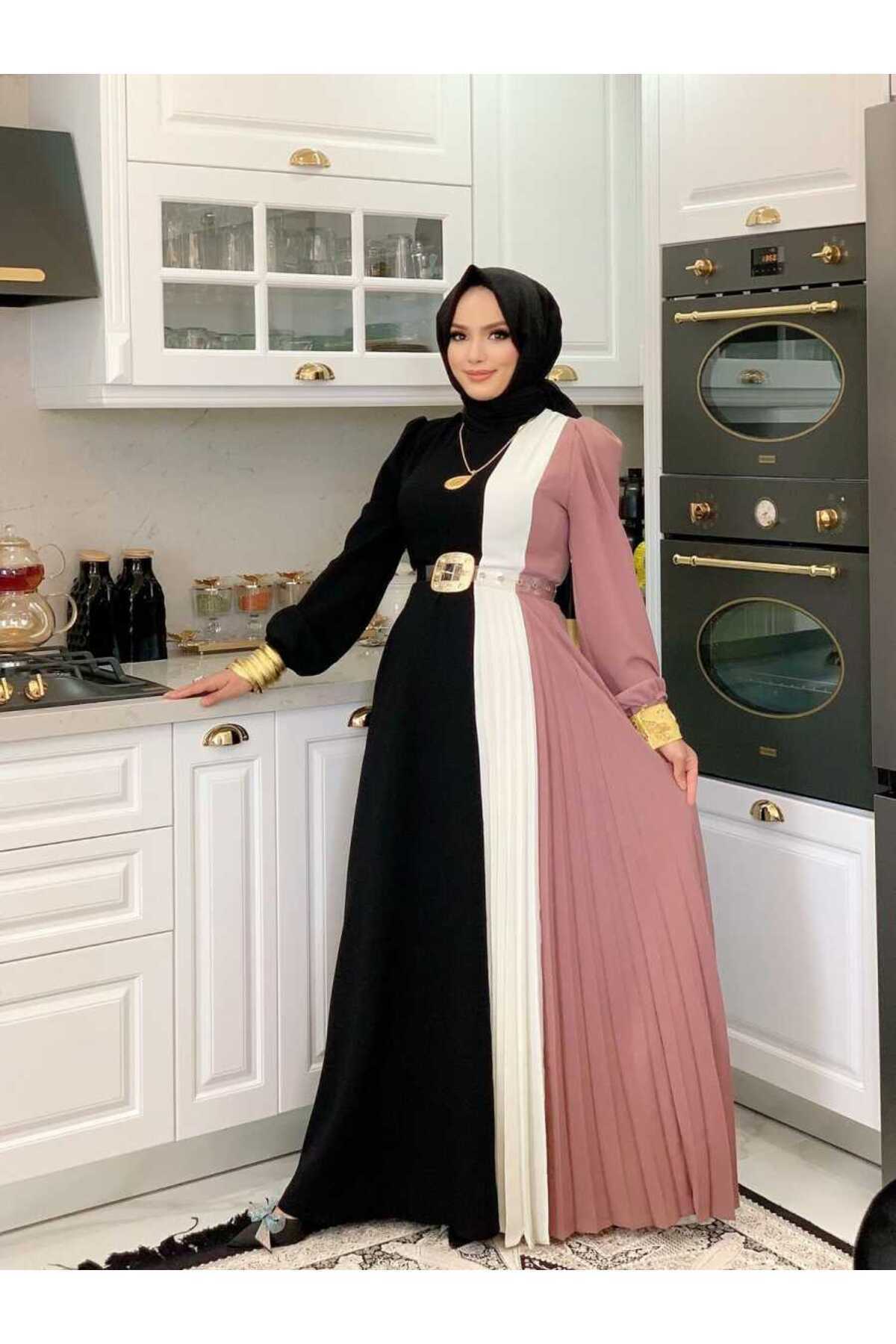 Üç Renkli Bel Kemer Pilise Detay Elbise 3622 Lacivert Üç Renkli Bel Kemer Pilise Detay Elbise 3622 Lacivert 8230 46