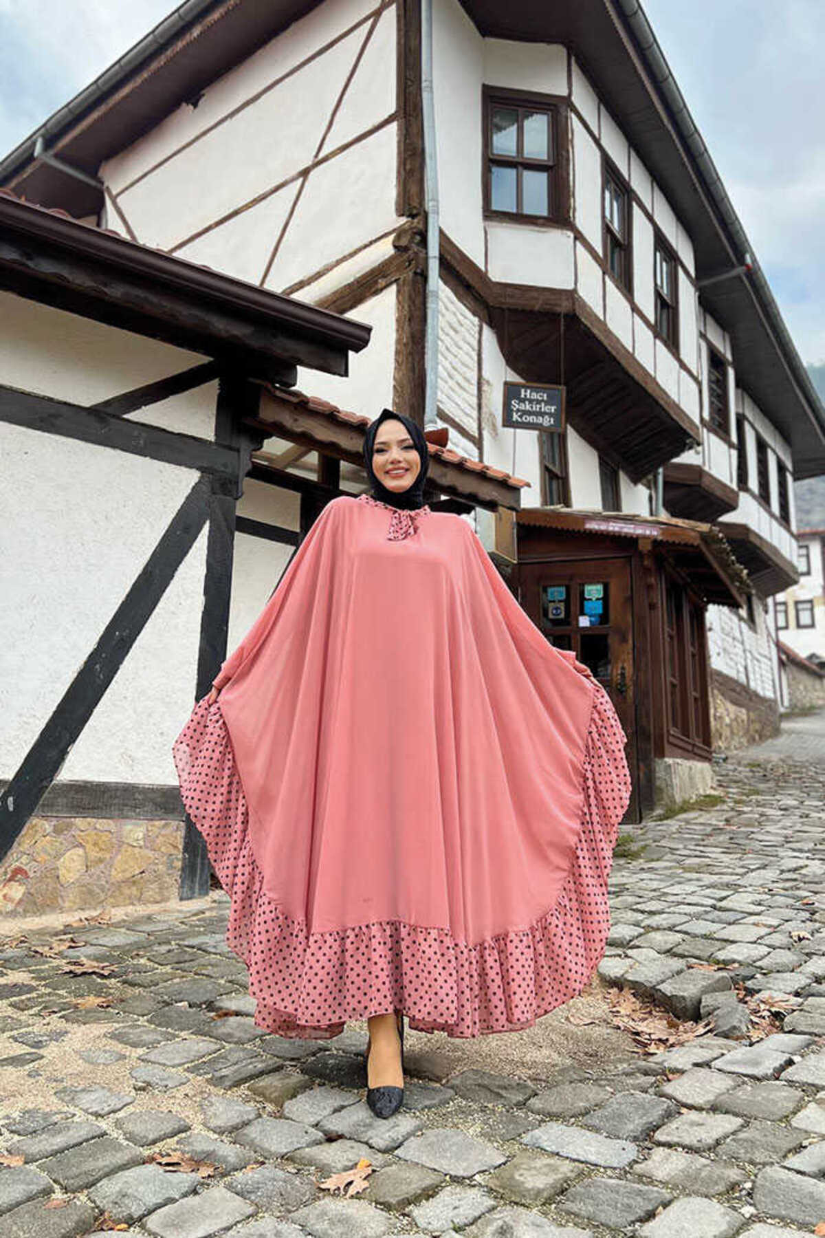 Benekli Yaka Detay Şifon Pelerinli Elbise Takım 3643 Zümrüt Benekli Yaka Detay Şifon Pelerinli Elbise Takım 3643 Zümrüt 2757 تک سایز