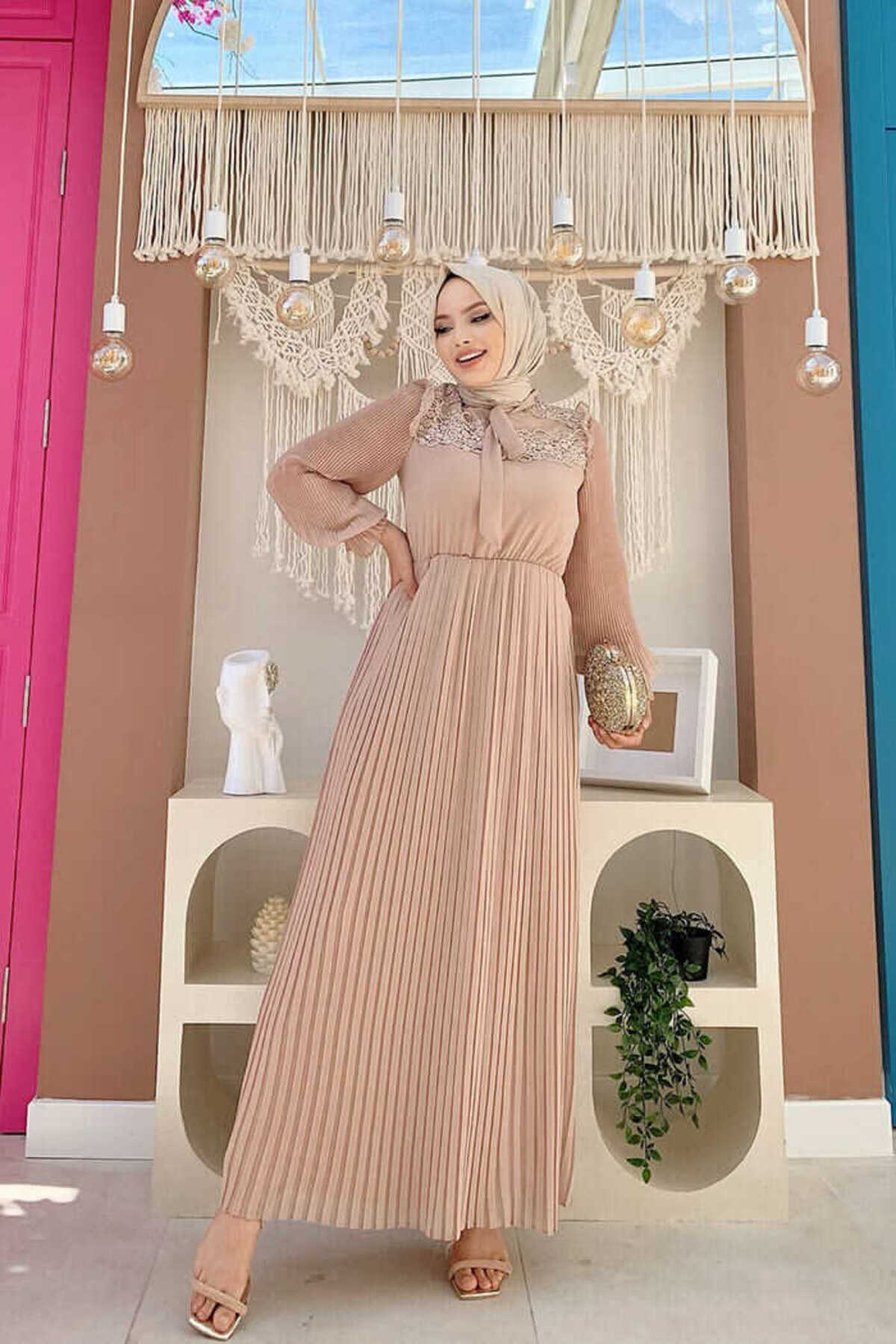 Kat Kat Görünüm Kol Manşetleri Lastikli Şifon Elbise 3060 Gri Kat Kat Görünüm Kol Manşetleri Lastikli Şifon Elbise 3060 Gri 5267 48
