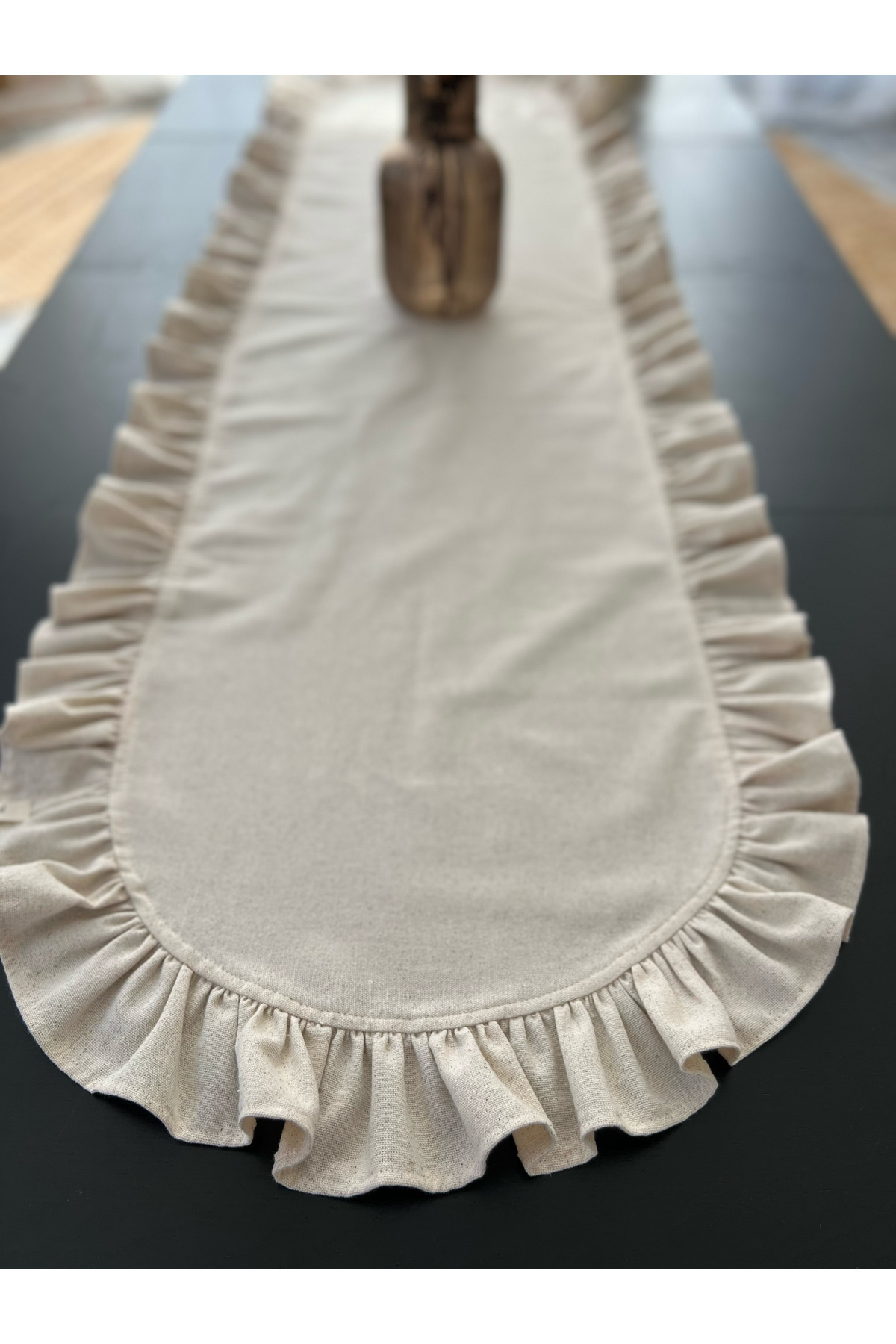 Vintage Kadife Dokulu Dertsiz Taş Çift Kat Fırfırlı Runner Vintage Kadife Dokulu Dertsiz Taş Çift Kat Fırfırlı Runner VDM58 تک سایز