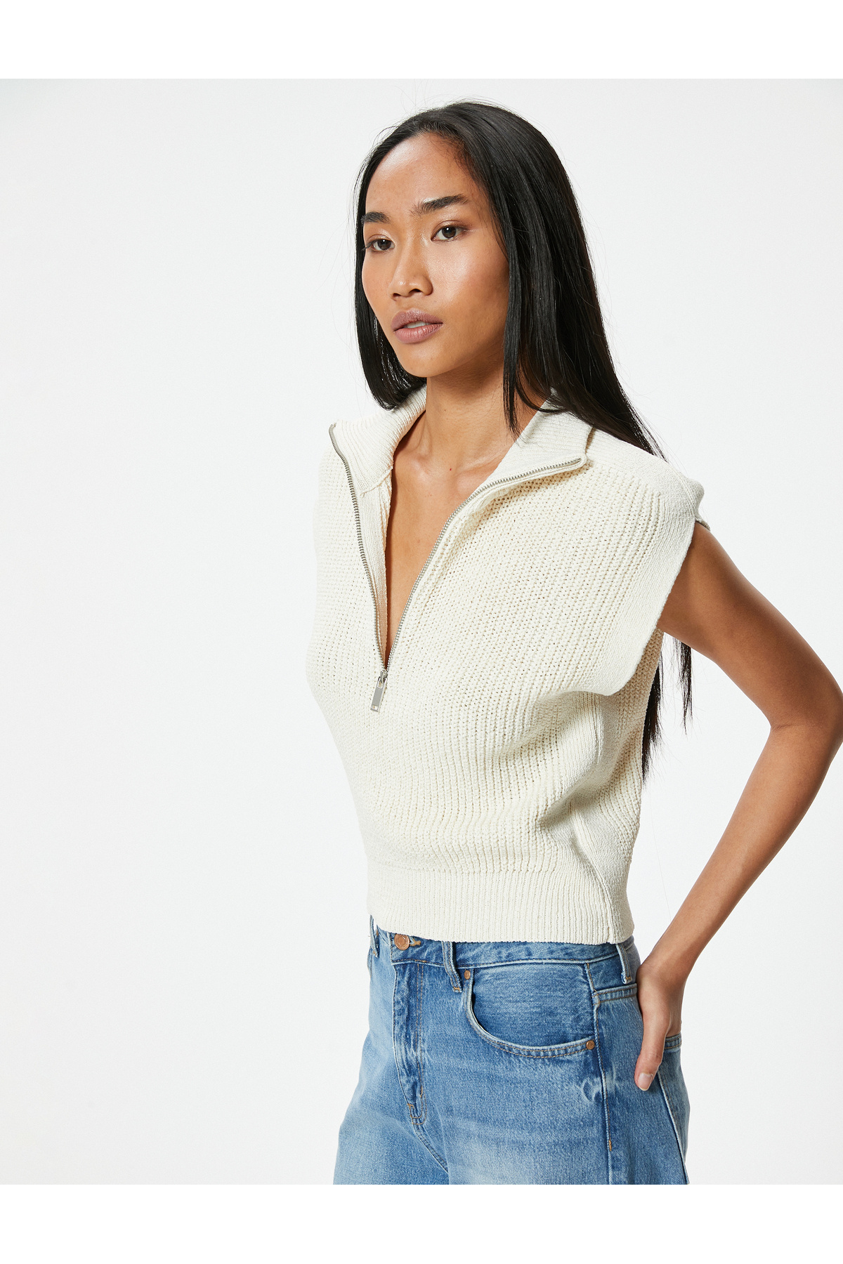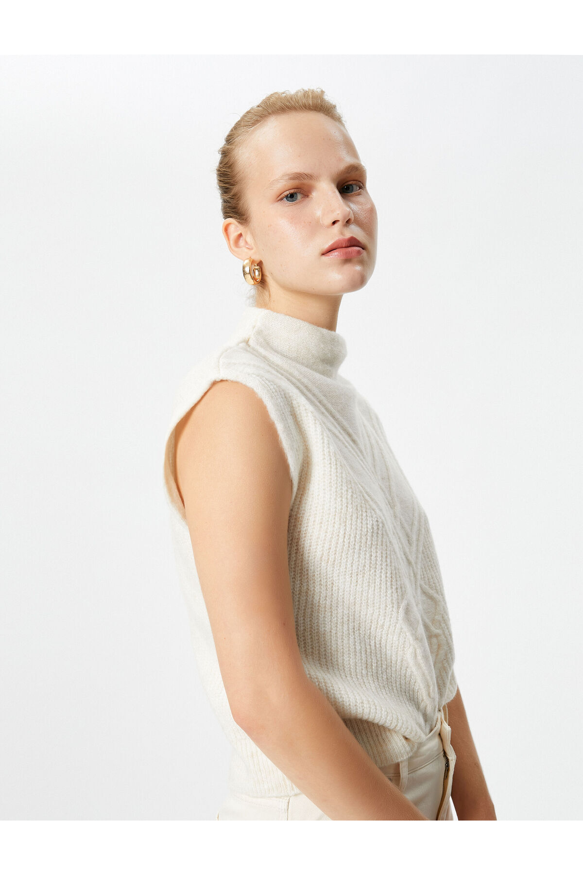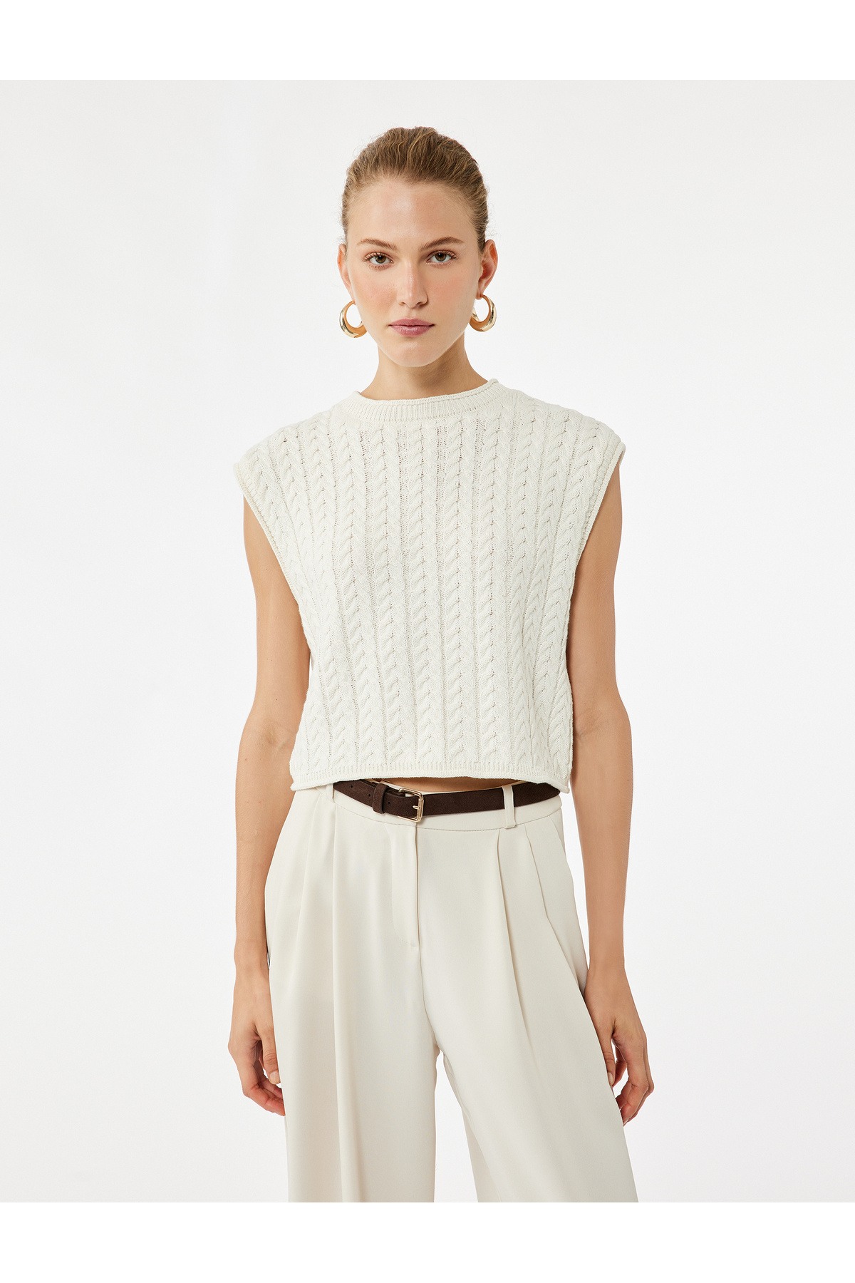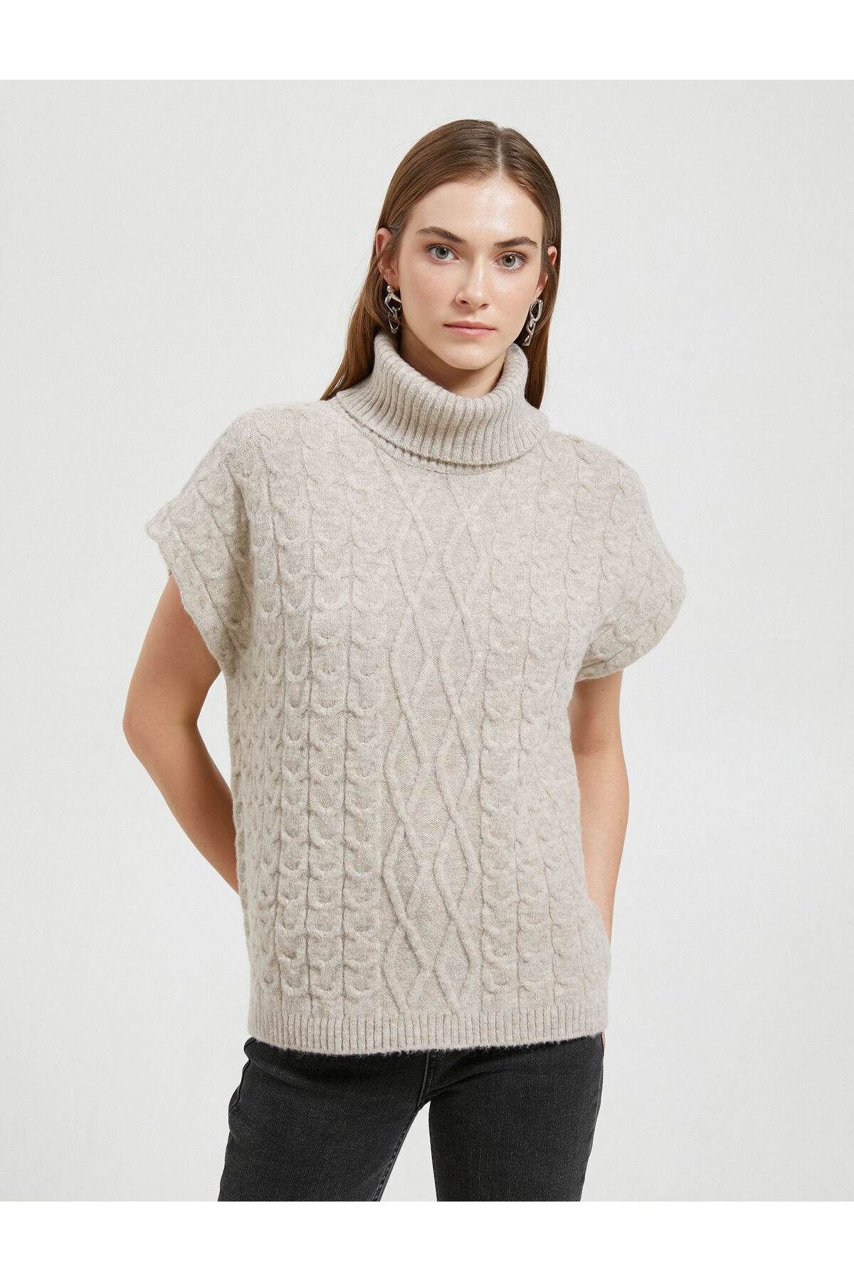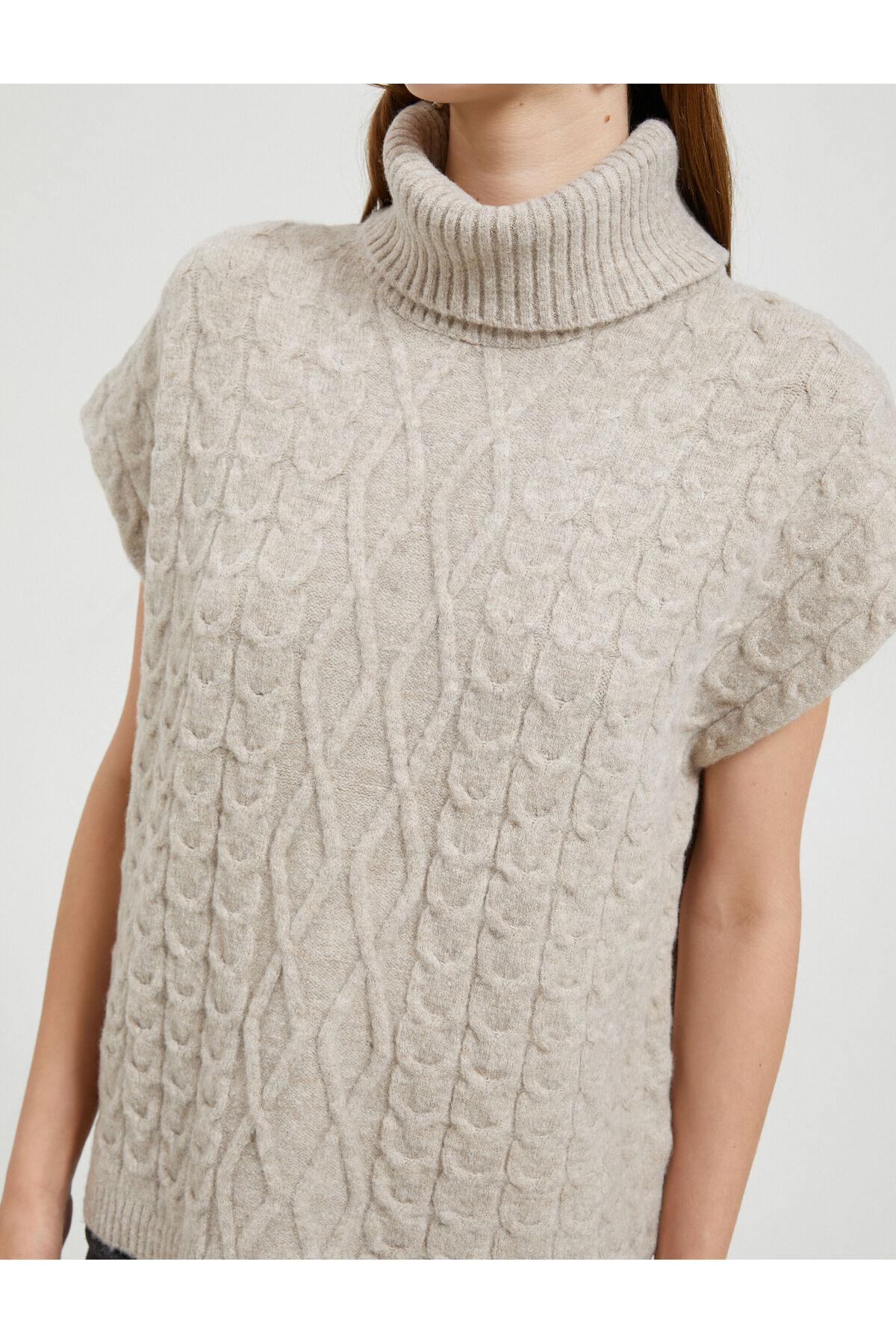 Boğazlı Süveter Saç Örgüsü Desenli Kısa Kollu Ribanalı Boğazlı Süveter Saç Örgüsü Desenli Kısa Kollu Ribanalı 4WAK20008HT XL