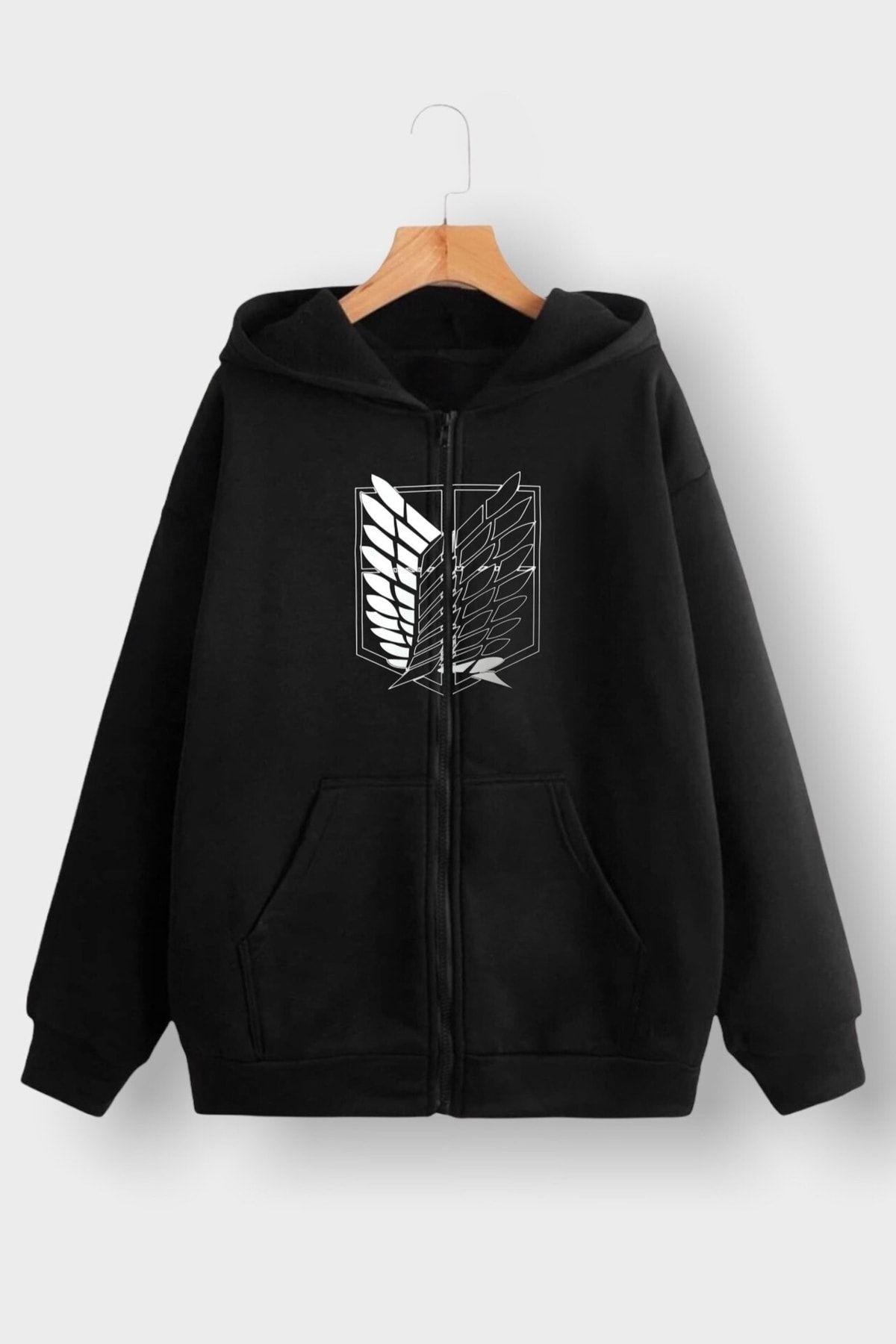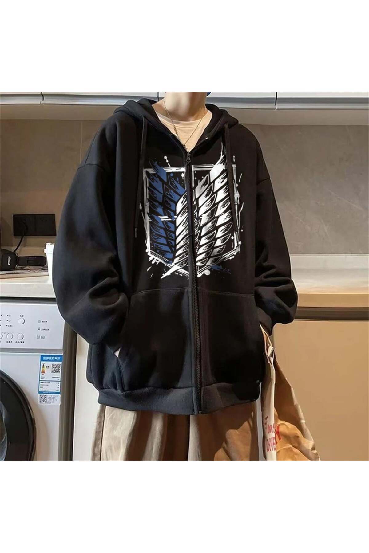 Attack On Titan New Logo Baskılı Oversize Fermuarlı Siyah Unisex Kapüşonlu Hırka Attack On Titan New Logo Baskılı Oversize Fermuarlı Siyah Unisex Kapüşonlu Hırka TZ5365 L/XL