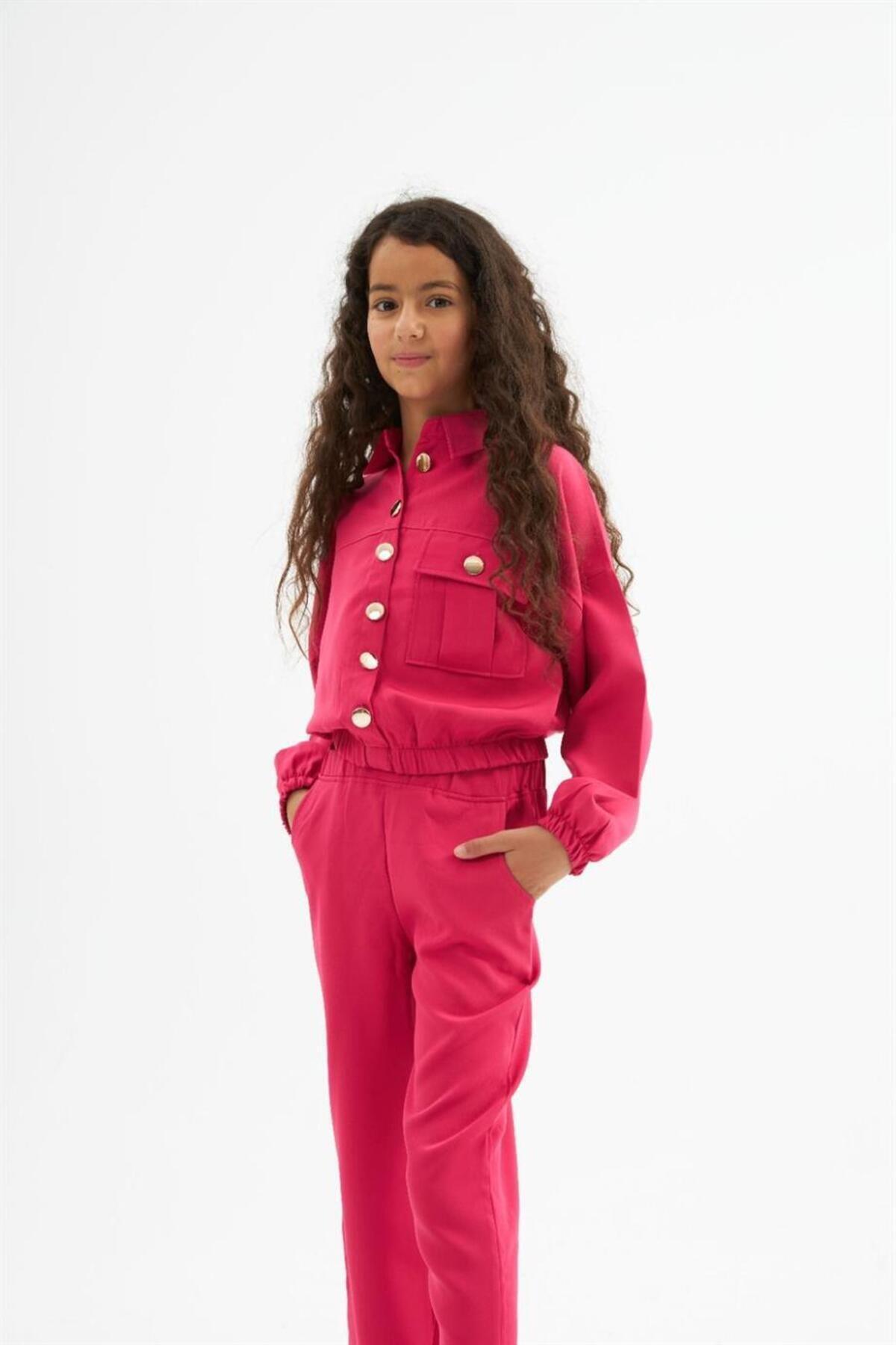 Kız Çocuk Gold Düğme Detaylı Double Kumaş Uzun Kollu Bluz ve Pantolon 2'li Takım Kız Çocuk Gold Düğme Detaylı Double Kumaş Uzun Kollu Bluz ve Pantolon 2'li Takım HA-255 14 Yaş