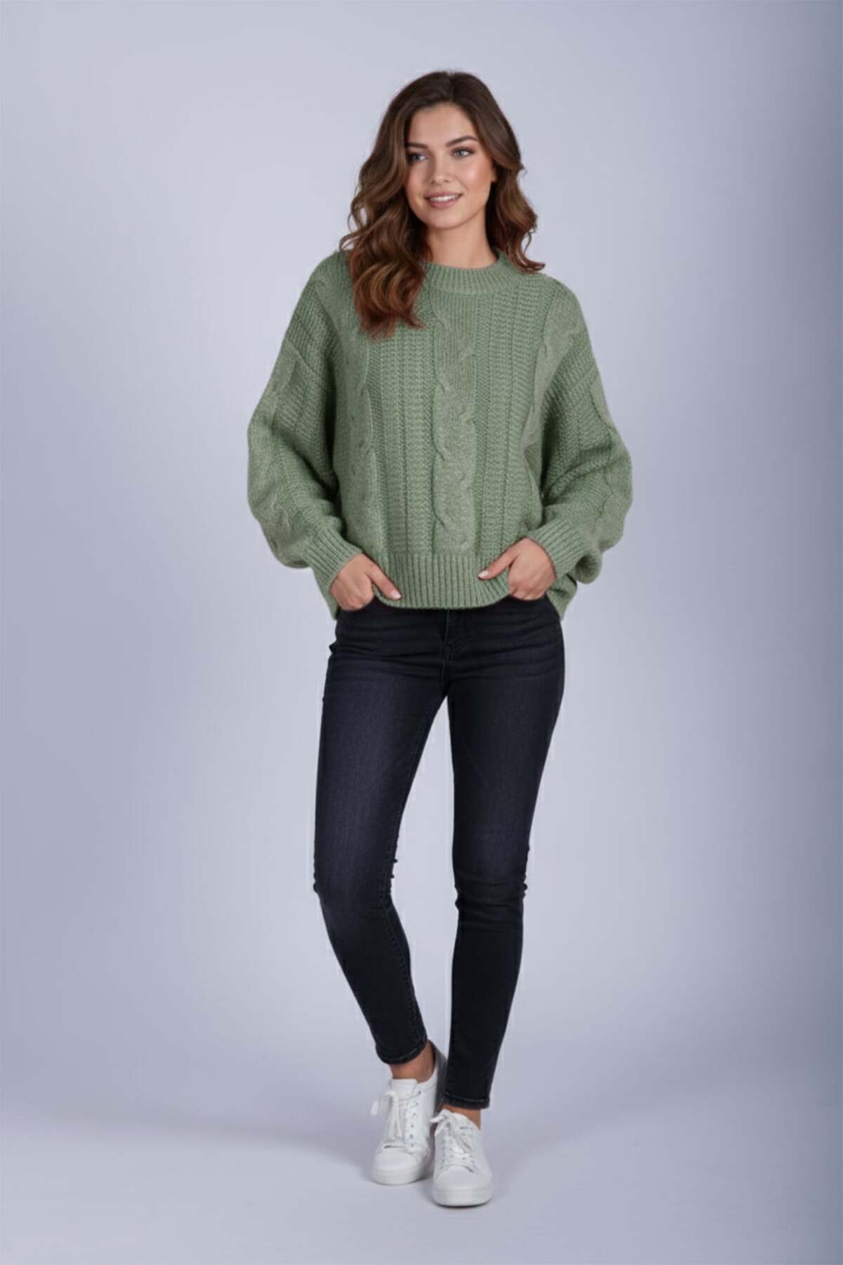 Yeşil Saç Örgülü Kazak Yeşil Saç Örgülü Kazak TXC7BD08BA204 S/M