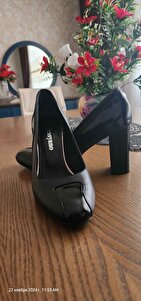 Hakiki Deri Rugan Çizgili Hatlar 1. Sınıf Yumuşak Deriden Siyah Konforlu 7,5 Cm Kalın Klasik Topuklu Hakiki Deri Rugan Çizgili Hatlar 1. Sınıf Yumuşak Deriden Siyah Konforlu 7,5 Cm Kalın Klasik Topuklu GRS031 42