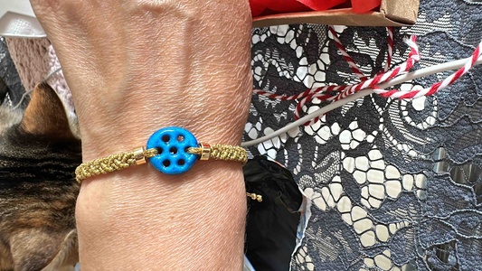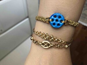 Süryani nazar taşı altın renk kordonlu makrome bileklik Süryani nazar taşı altın renk kordonlu makrome bileklik suryani altin rengi yedi delikli تک سایز