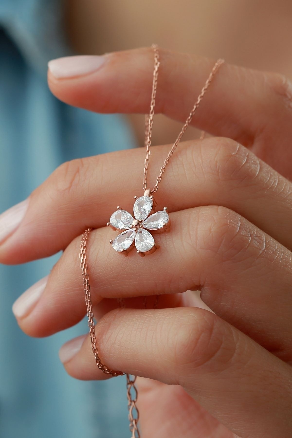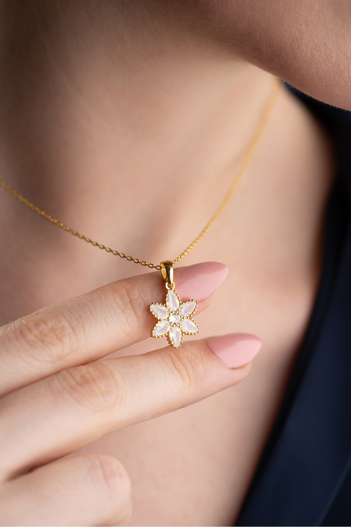 925 Ayar Gümüş Taşlı Nergis Çiçeği Kolye 925 Ayar Gümüş Taşlı Nergis Çiçeği Kolye TG-KLFVRNGS35 45 cm