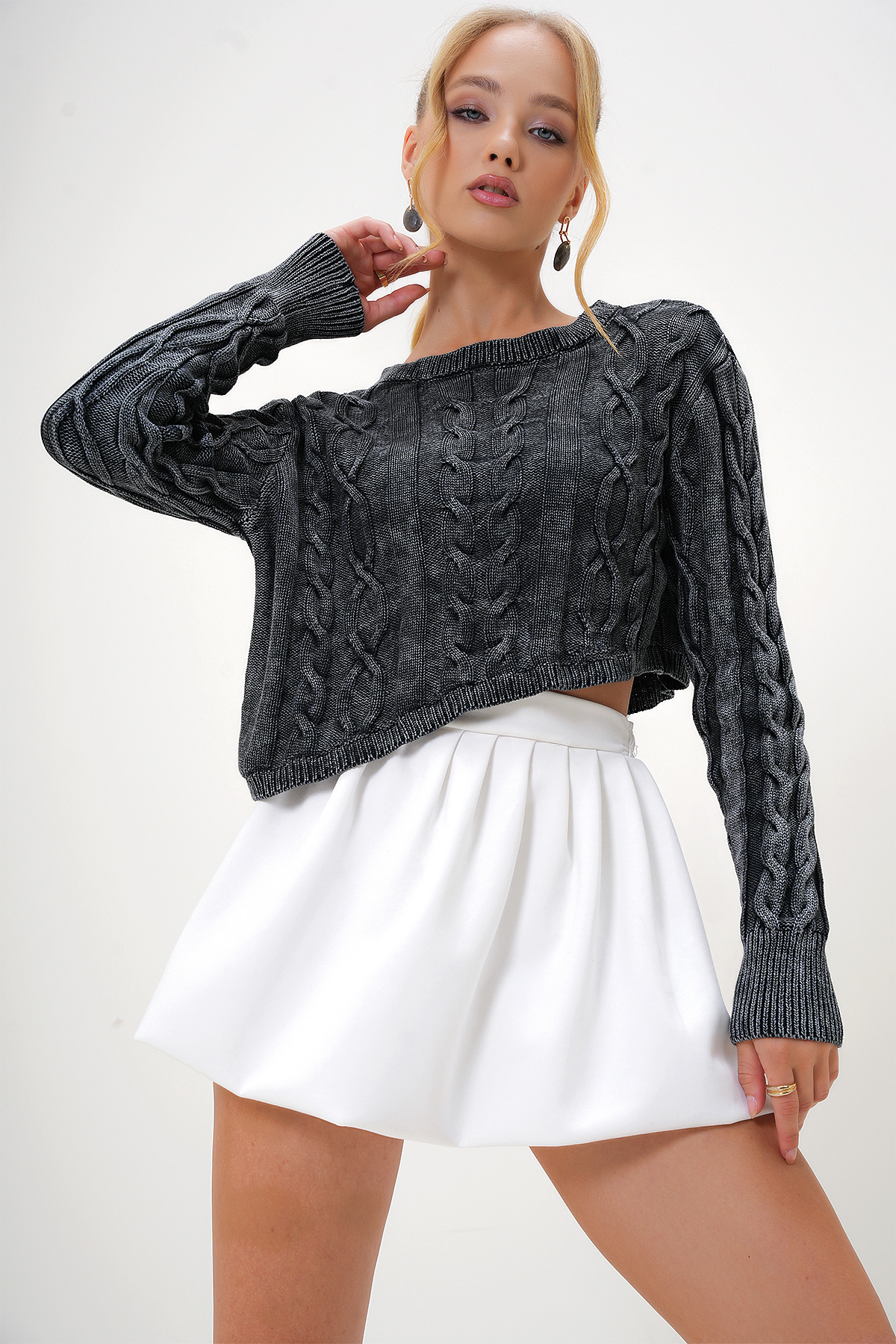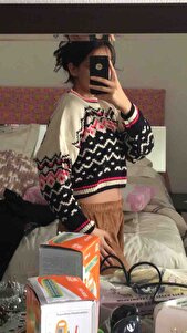 Kadın Lacivert Bisiklet Yaka Etnik Desenli Crop Triko Kazak ALC-X10834 Kadın Lacivert Bisiklet Yaka Etnik Desenli Crop Triko Kazak ALC-X10834 Standart