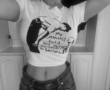 Kadın Üste Oturan Kalıp Bel Boy Crop Baskılı Bisiklet Yaka Baby Tee Kadın Üste Oturan Kalıp Bel Boy Crop Baskılı Bisiklet Yaka Baby Tee BASTARDS-BBT-MDL-001 M