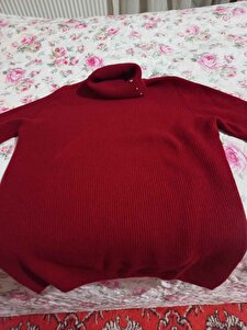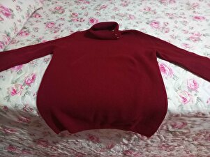 Kadın Tam Balıkçı Yaka Kol Ucu Düğmeli Yün Kazak K.Kırmızı Kadın Tam Balıkçı Yaka Kol Ucu Düğmeli Yün Kazak K.Kırmızı 23159 XL