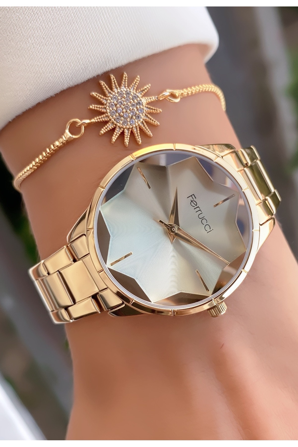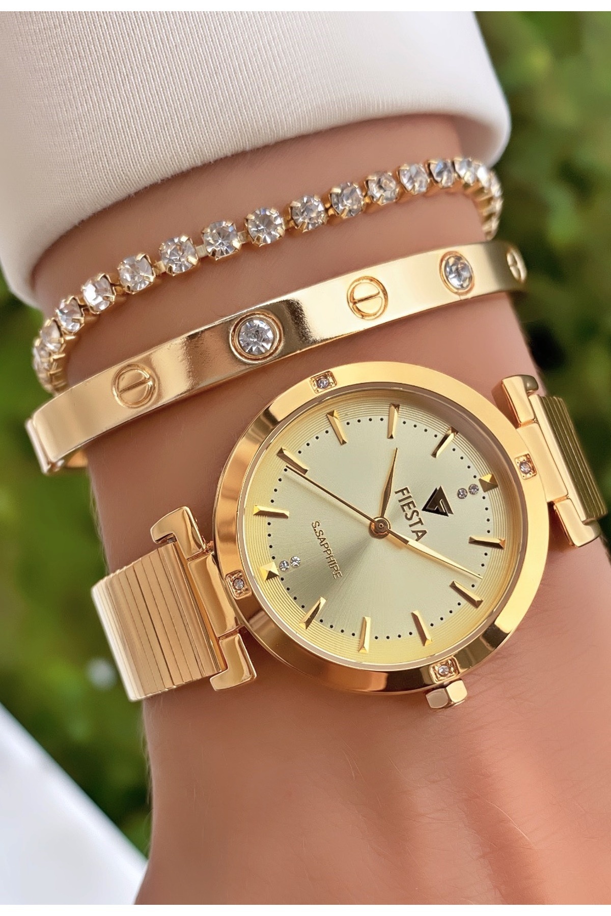 2 Yıl Garantili Altın Sarısı Çelik Kordon Gelin, Nişan, Düğün Küçük Kasa Kol Saati - Bileklik 2 Yıl Garantili Altın Sarısı Çelik Kordon Gelin, Nişan, Düğün Küçük Kasa Kol Saati - Bileklik 0851FST8121-1041 تک سایز