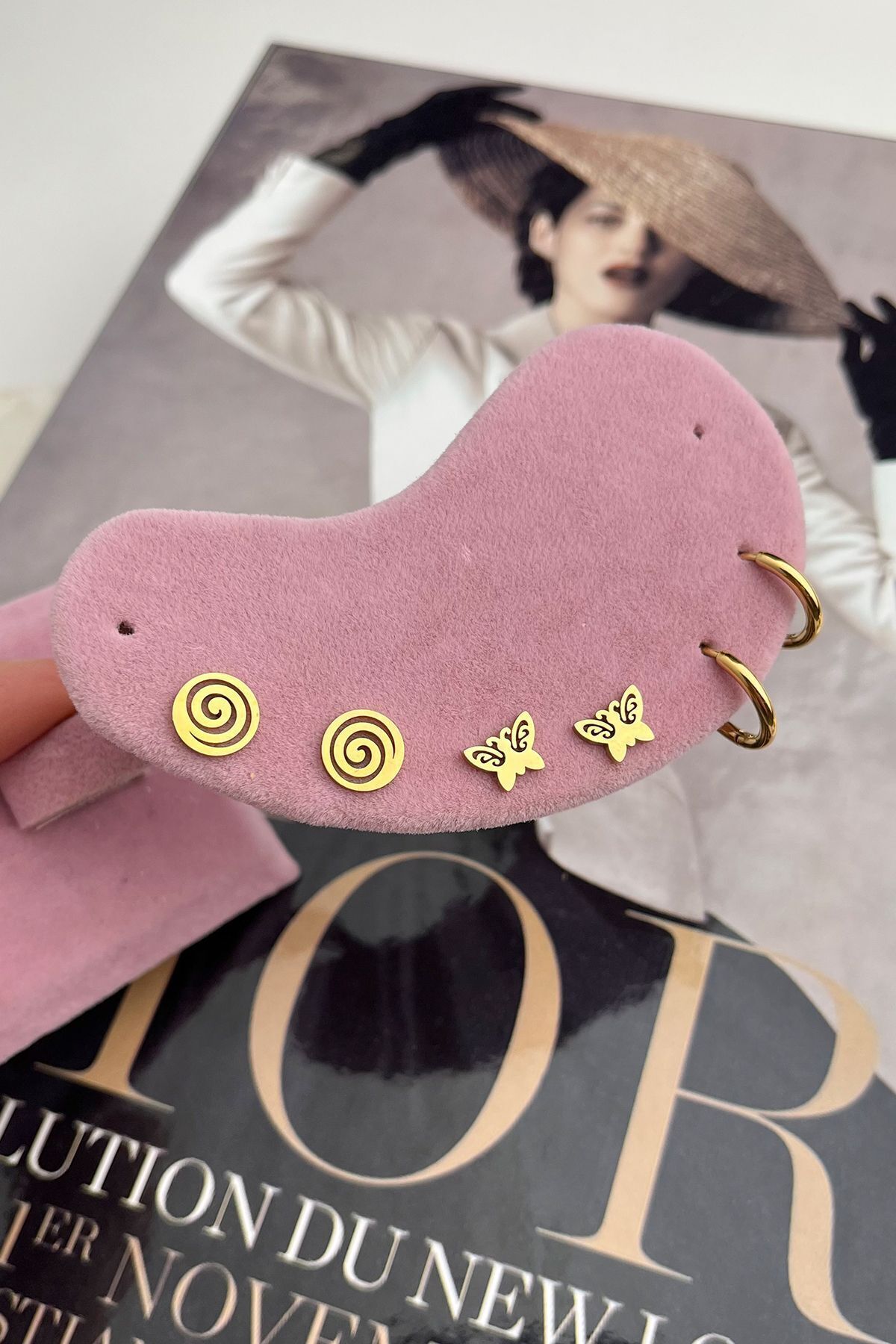 Çelik Altın Rengi Kelebek&halka Çoklu Küpe Çelik Altın Rengi Kelebek&halka Çoklu Küpe KP6443 تک سایز