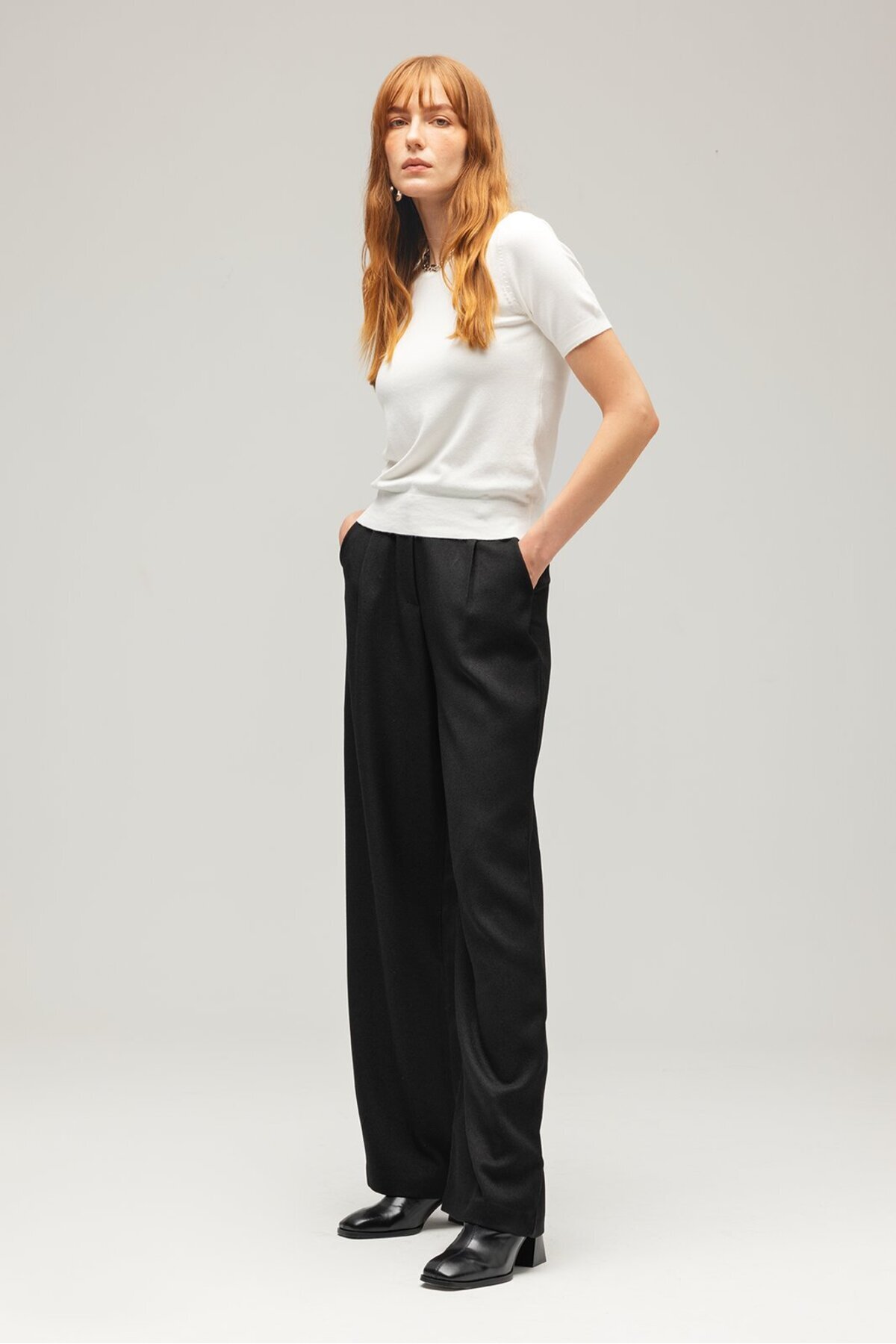 Siyah Yüksek Bel Yırtmaç Detaylı Cepli Pantolon Siyah Yüksek Bel Yırtmaç Detaylı Cepli Pantolon MYAZ23PL0070 46