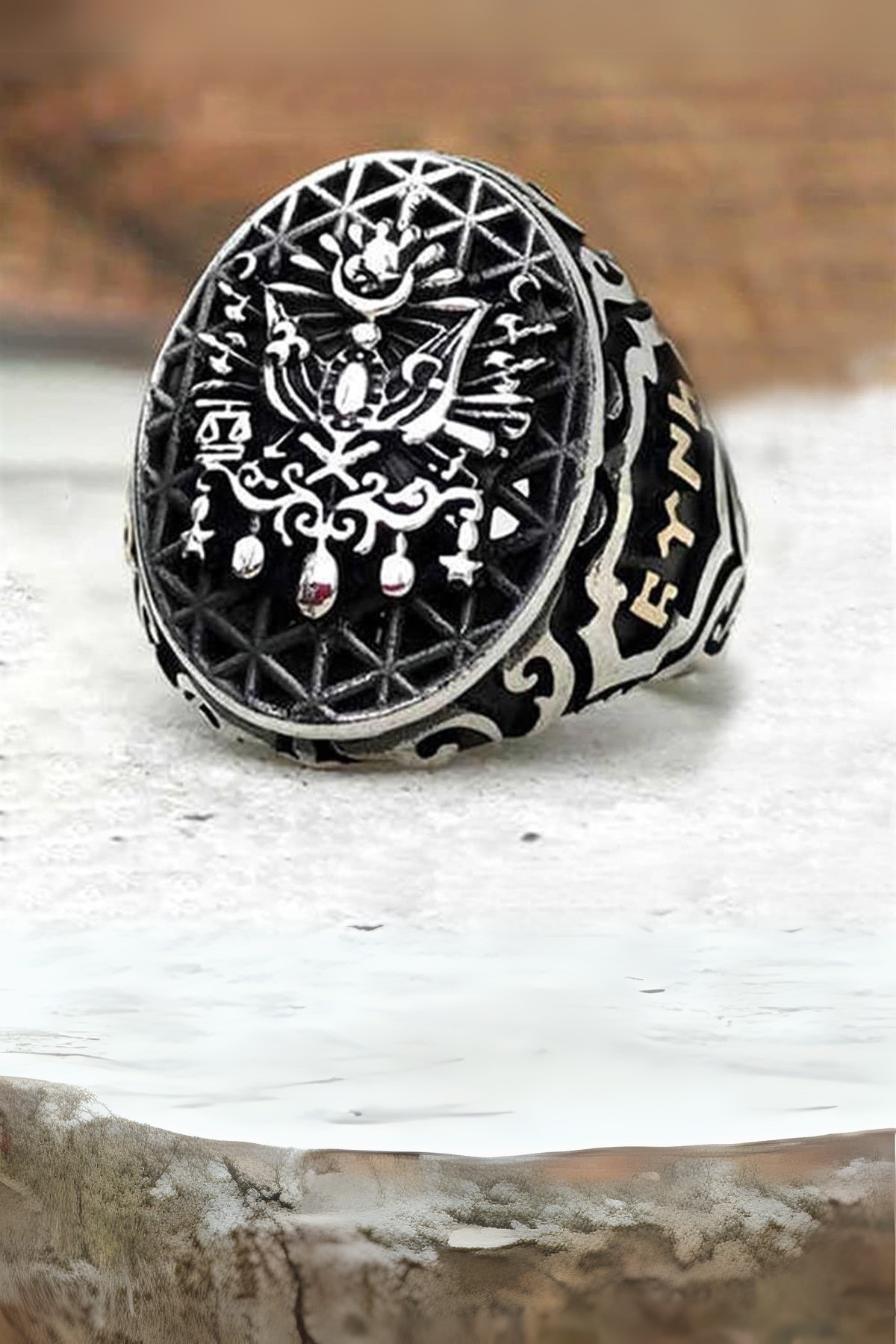 Kenar Motifli Tuğra ve Ay Yıldız Motifli Erkek Gümüş Yüzük Kenar Motifli Tuğra ve Ay Yıldız Motifli Erkek Gümüş Yüzük DEY1474 33