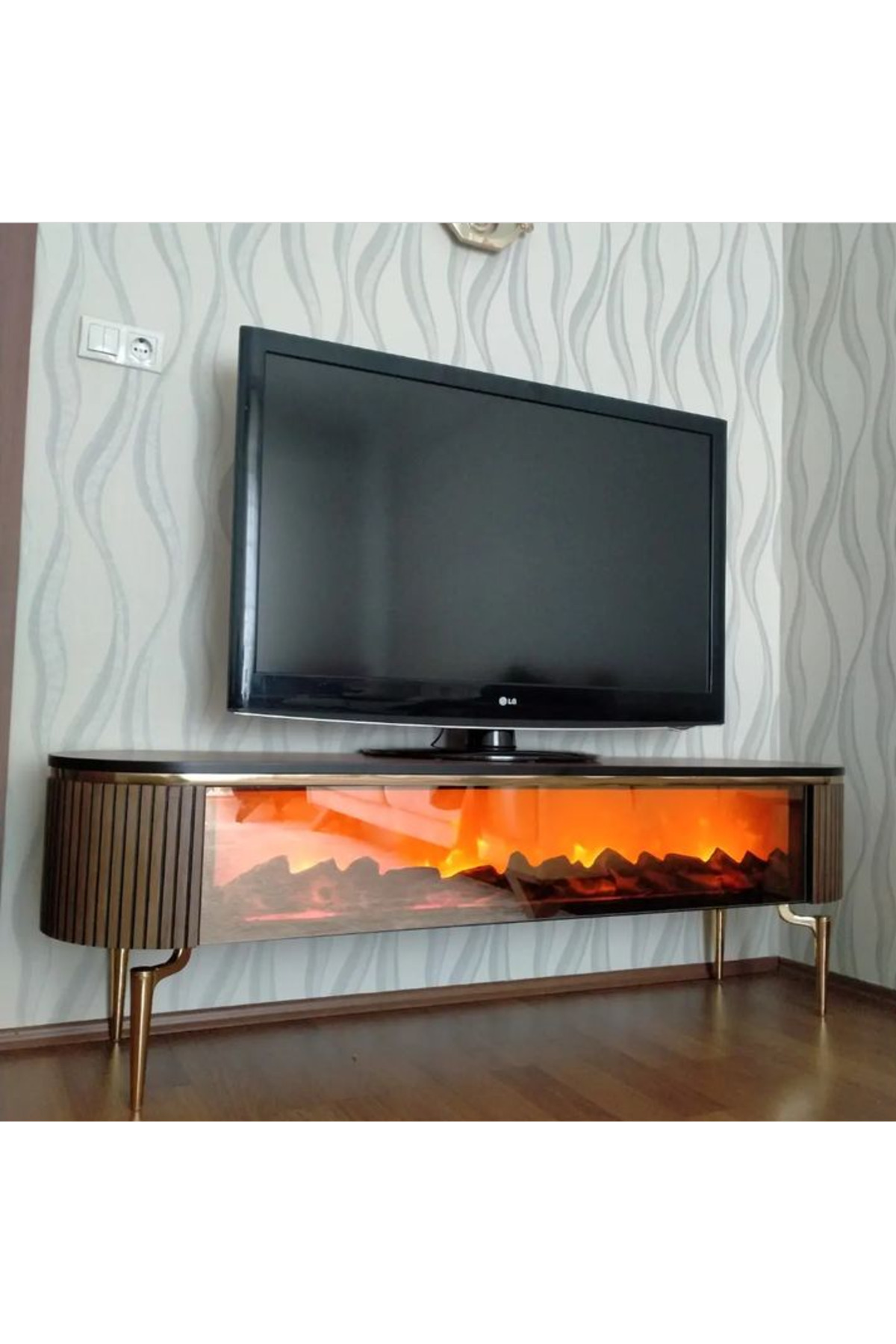 Ceviz Metal Ayaklı Mdf Tv Ünitesi 170*42*55 Ceviz Metal Ayaklı Mdf Tv Ünitesi 170*42*55 EKRU تک سایز