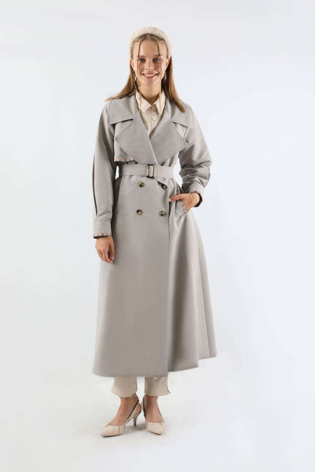 Ekose Detaylı Trençkot Gri Ekose Detaylı Trençkot Gri ZLYS4846 2