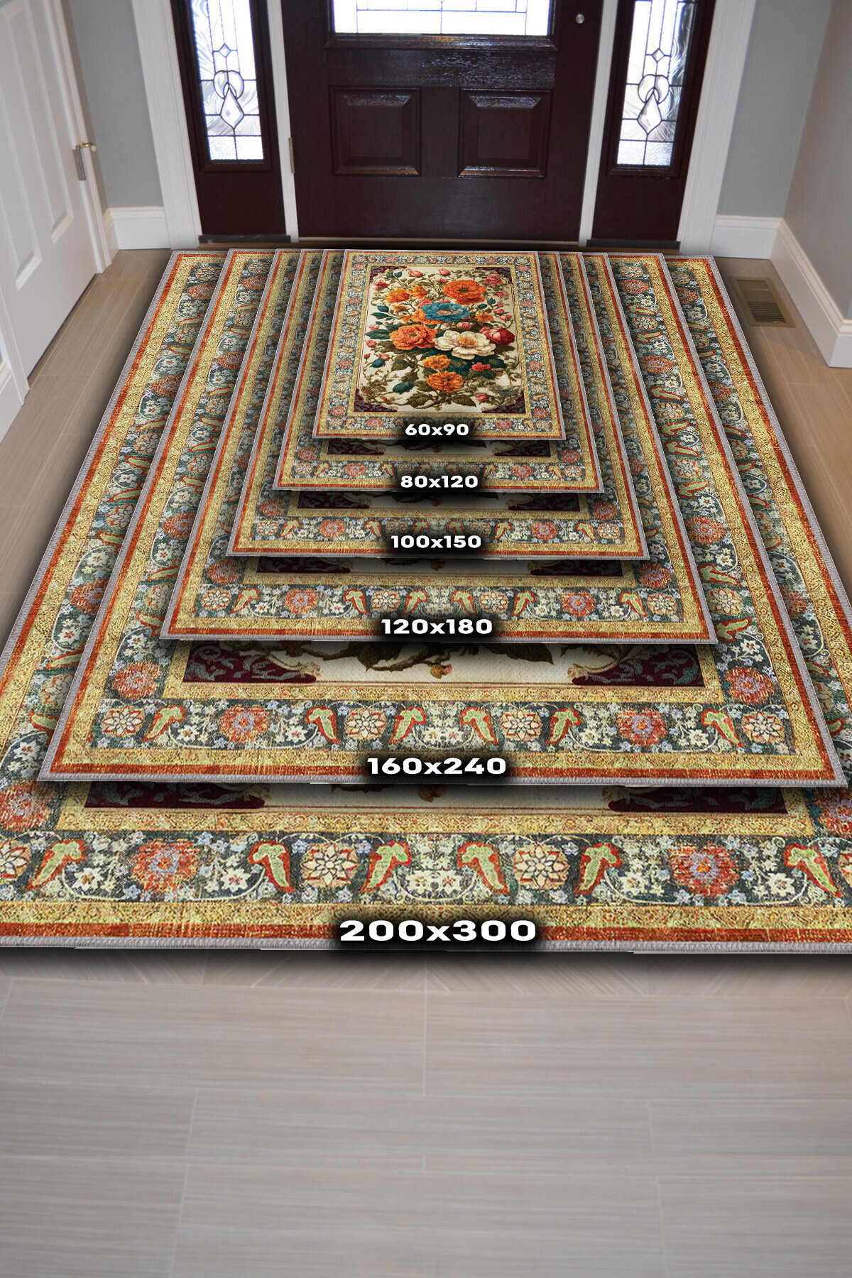 Art Deco Renkli Çiçekler Vintage Halı Görünümlü Dijital Renkli Halı,rustik Çiçekli Halı Art Deco Renkli Çiçekler Vintage Halı Görünümlü Dijital Renkli Halı,rustik Çiçekli Halı Plants_00001 80 x 240