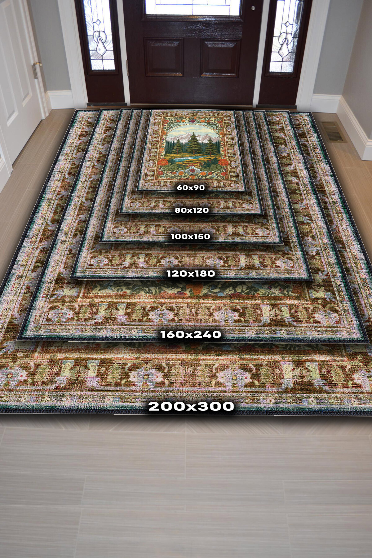 Art Deco Ladin Ağacı Vintage Halı Görünümlü Dijital Baskı Renkli Halı,rustik Çiçekli Halı Art Deco Ladin Ağacı Vintage Halı Görünümlü Dijital Baskı Renkli Halı,rustik Çiçekli Halı Plants_00004 80 x 240