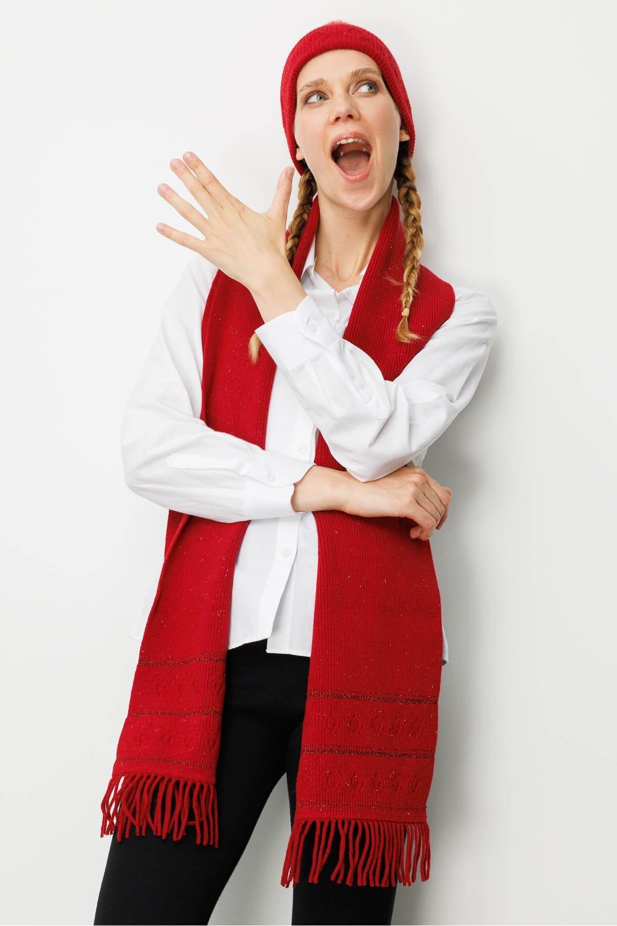 Kadın Triko Tek Renk Püsküllü Yün Kaşkol Mercan Kadın Triko Tek Renk Püsküllü Yün Kaşkol Mercan 23300 تک سایز