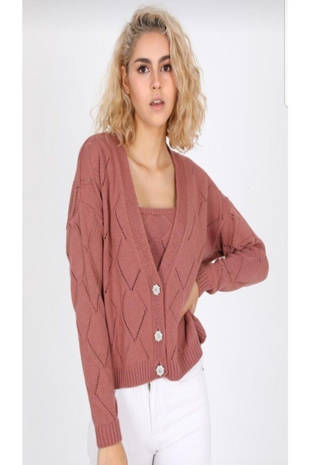 Kare Desen Bluz Hırka Triko Takım - Gül Kare Desen Bluz Hırka Triko Takım - Gül TYCYDUN3ZN169392196407815 M