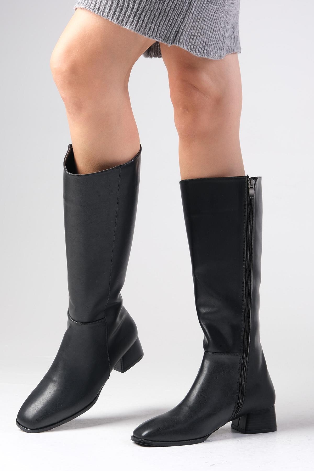 Briony Siyah Renk Yandan Fermuarlı, İnce Suni Kürk Astarlı Küt Burun Kadın Topuklu Çizme Briony Siyah Renk Yandan Fermuarlı, İnce Suni Kürk Astarlı Küt Burun Kadın Topuklu Çizme 01492BLC 42