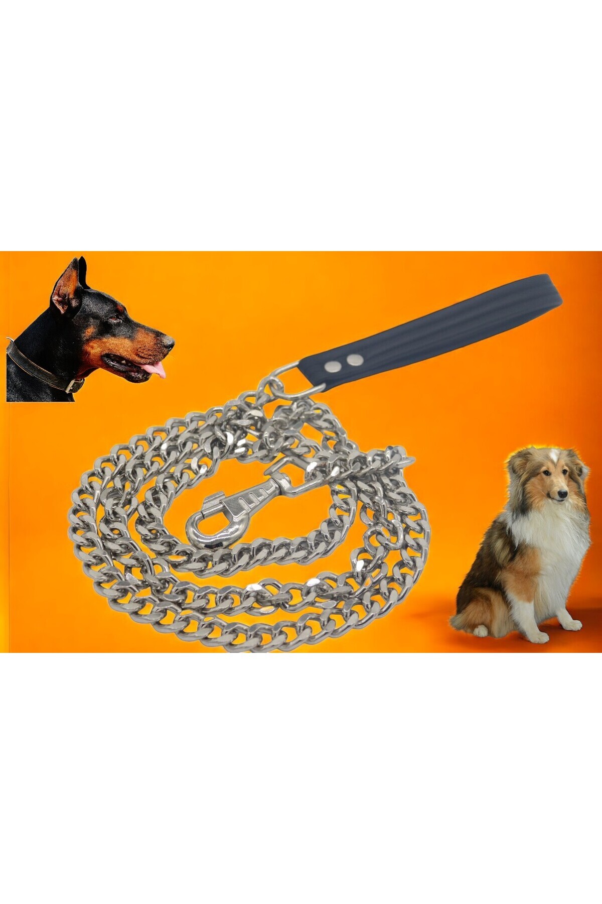 Büyük Irk Deri Saplı Köpek Gezdirme Zinciri (100CM) Büyük Irk Deri Saplı Köpek Gezdirme Zinciri (100CM) ac302 XL