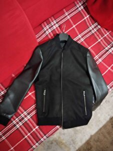Erkek Siyah Bomber Yaka Ribanalı Süet-Deri Görünümlü Mont A32Y6036 Erkek Siyah Bomber Yaka Ribanalı Süet-Deri Görünümlü Mont A32Y6036 2XL