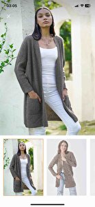 Kadın Selanik Örgü Cepli Triko Hırka Kahverengi 24w110 Kadın Selanik Örgü Cepli Triko Hırka Kahverengi 24w110 24W110 L/XL