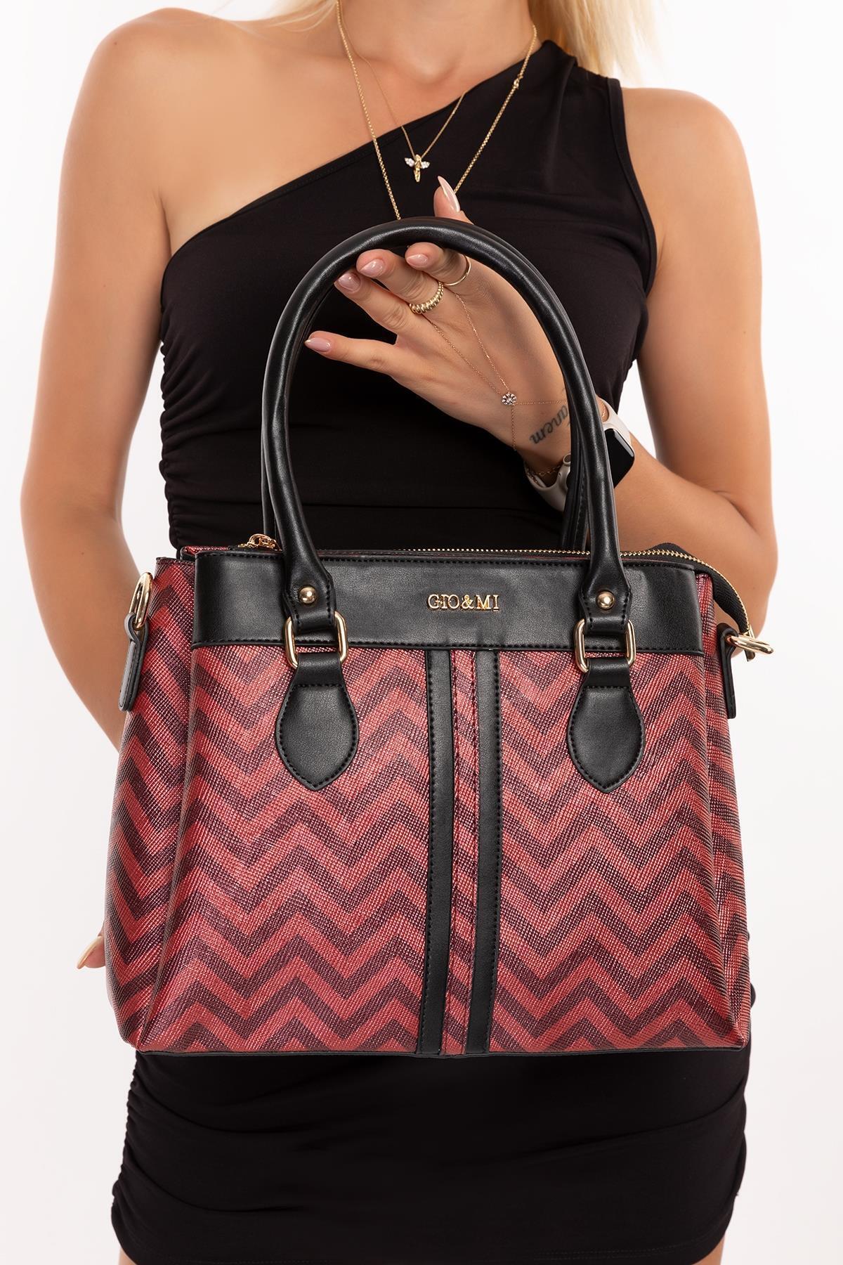 Elvin El Ve Omuz Çantası Bordo Zikzak Elvin El Ve Omuz Çantası Bordo Zikzak EE181307 Standart
