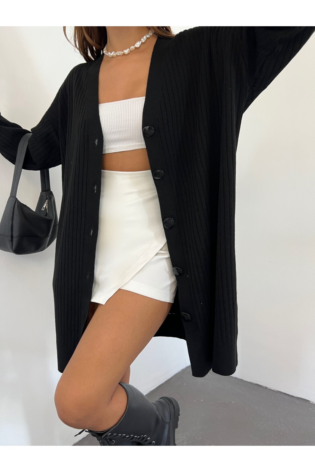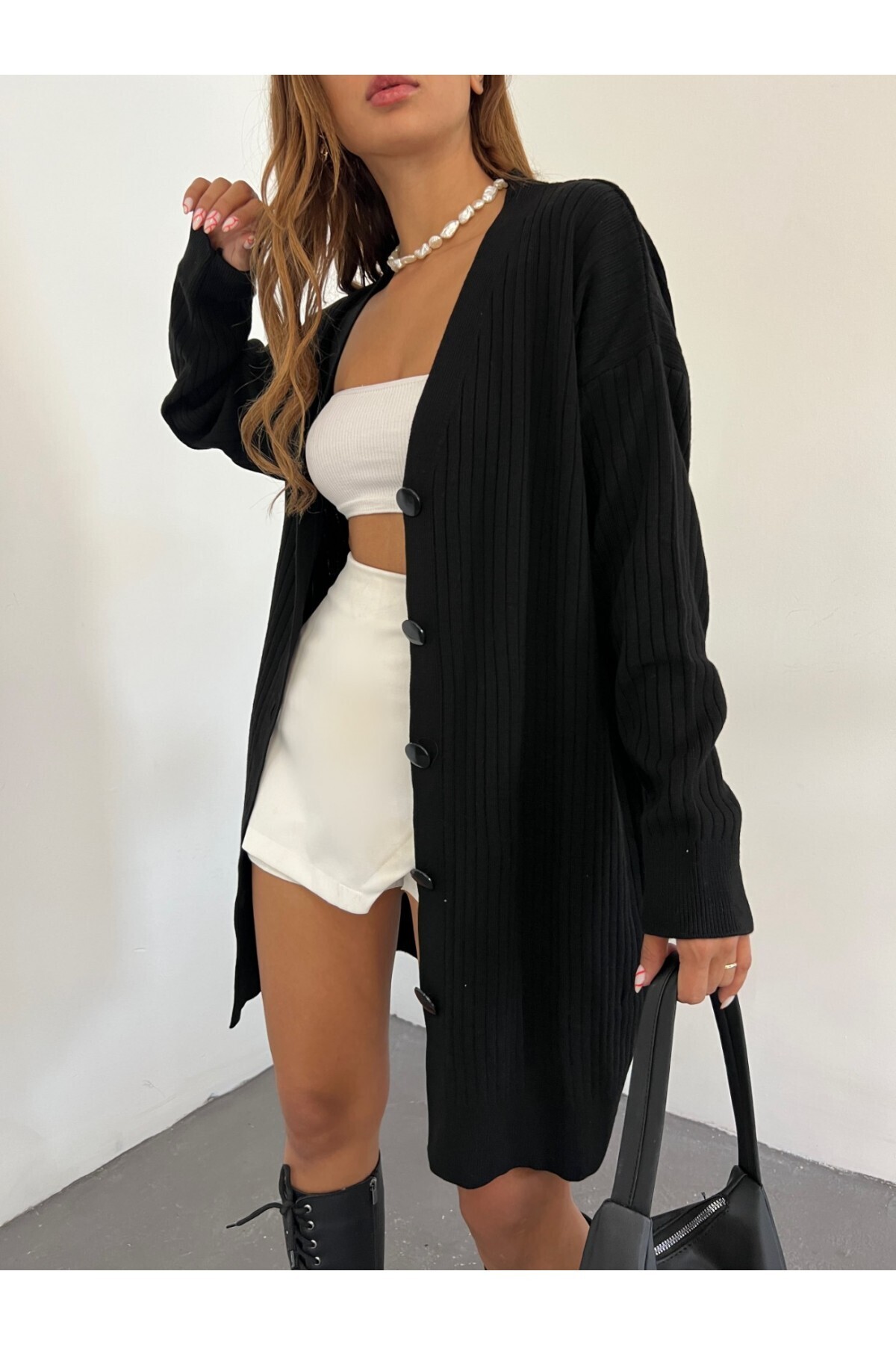 Fitilli Düğmeli Uzun Triko Hırka -siyah Fitilli Düğmeli Uzun Triko Hırka -siyah TY357-6040 Standart