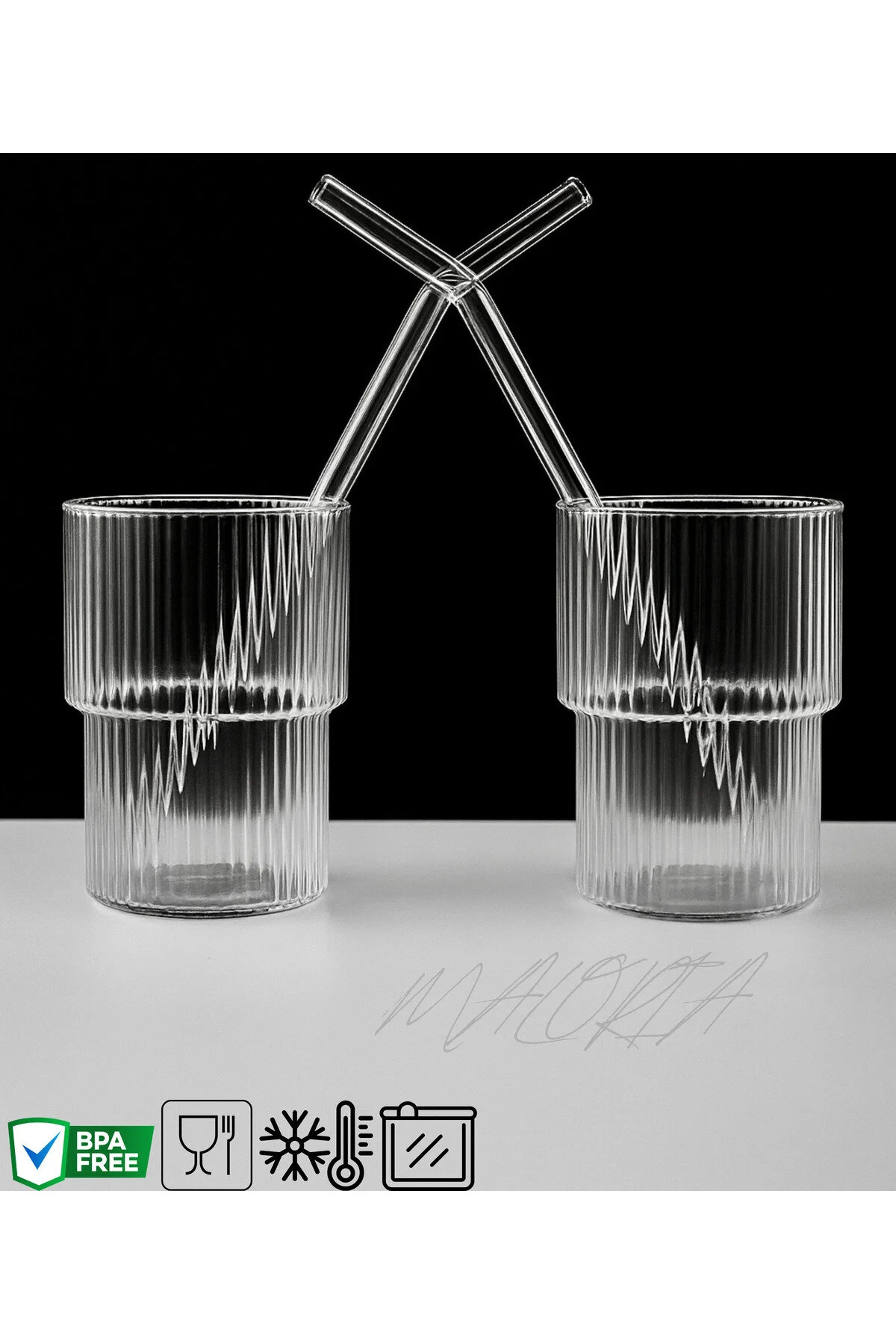 Isıya Dayanıklı Borosilikat Cam Şerit Şeklinde Bardak - 1 Adet Isıya Dayanıklı Borosilikat Cam Şerit Şeklinde Bardak - 1 Adet Seritli.Bardaki تک سایز