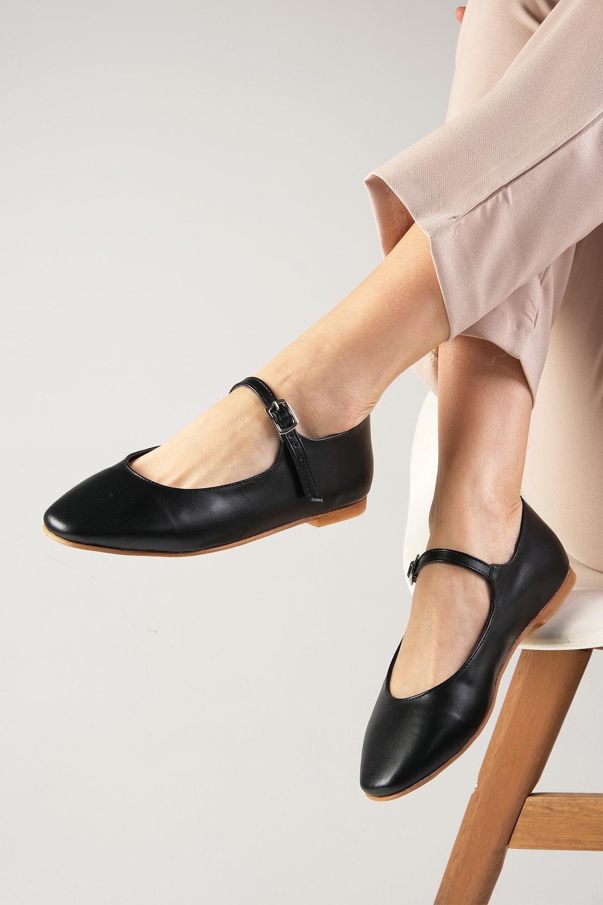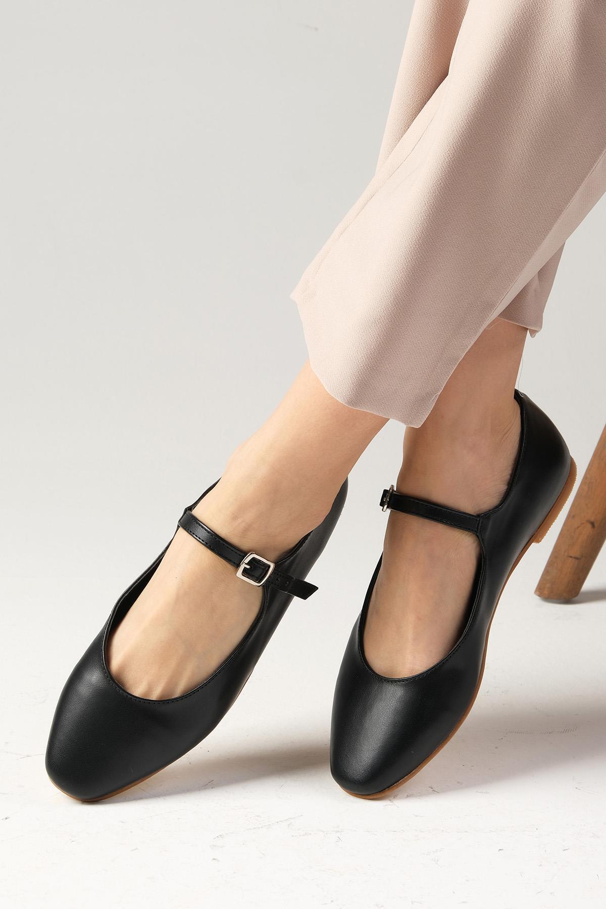 Gillian Siyah Renk Küt Burunlu Kadın Babet Ayakkabı Gillian Siyah Renk Küt Burunlu Kadın Babet Ayakkabı 02279C 42