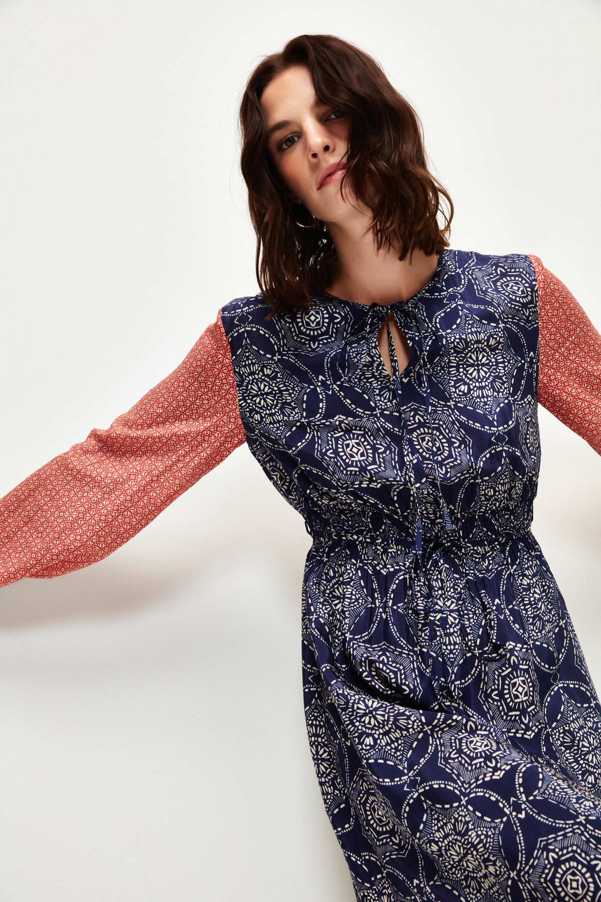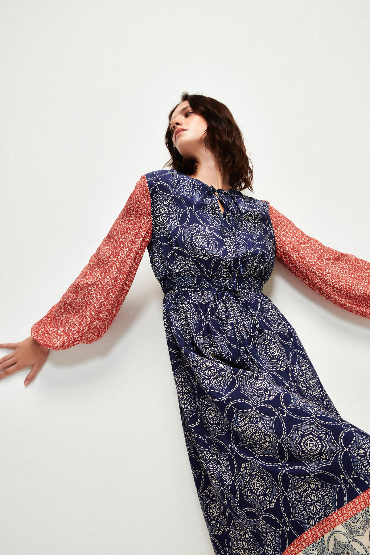 Uzun Kollu Desenli Uzun Elbise Uzun Kollu Desenli Uzun Elbise 12442880000 XL