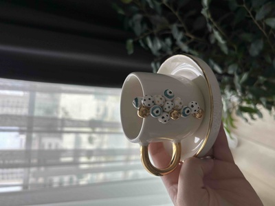 24 Ayar Altın Dekorlu, Nazar Boncuklu, El Yapımı, Duble Türk Kahvesi Fincanı 24 Ayar Altın Dekorlu, Nazar Boncuklu, El Yapımı, Duble Türk Kahvesi Fincanı MCF-0002 تک سایز