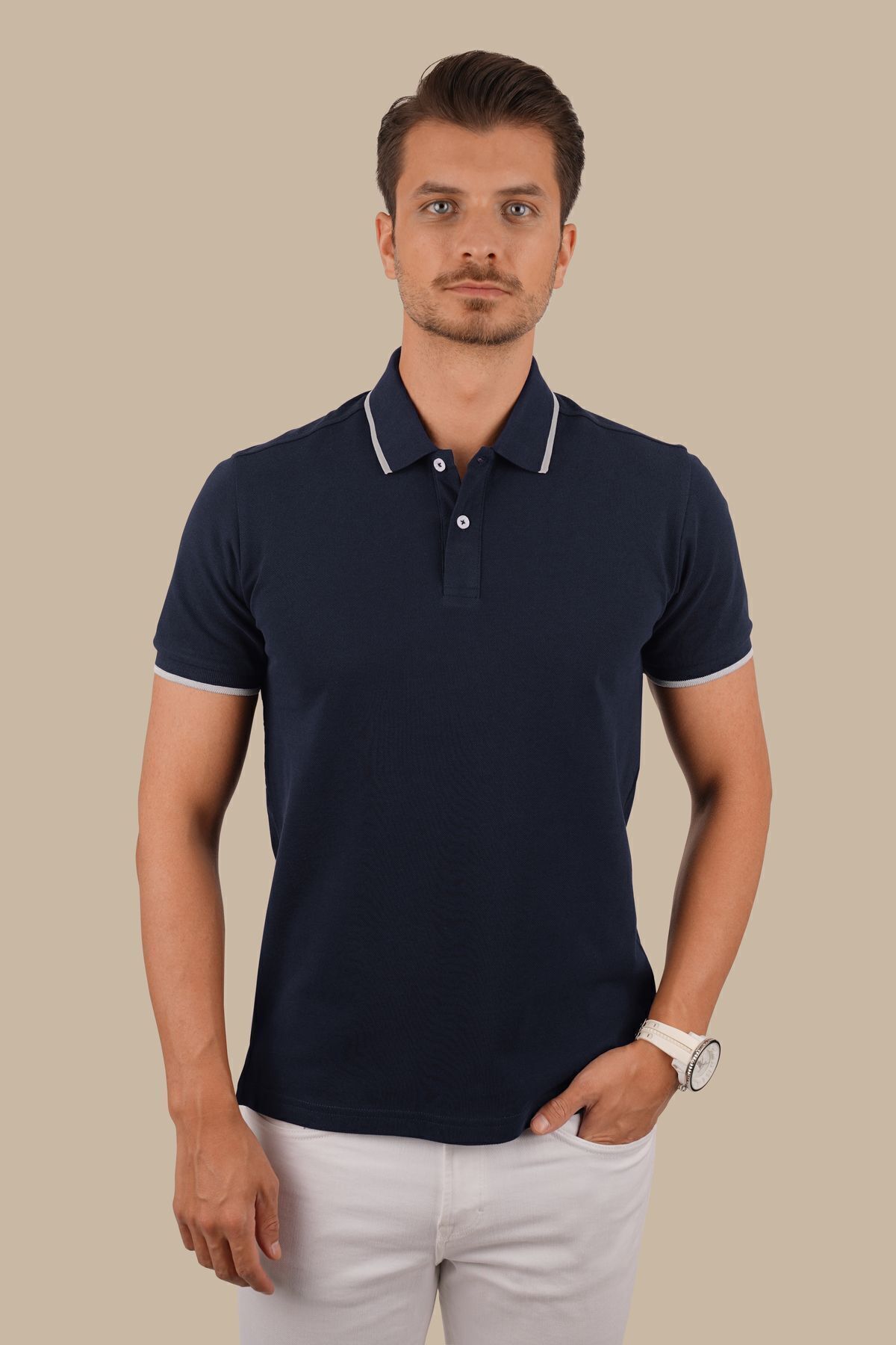 Lacivert Gri Yaka Çizgili Erkek Polo Yaka Tişört Lacivert Gri Yaka Çizgili Erkek Polo Yaka Tişört 701 2XL