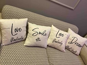 Kırlent Takım Seti Love Smile Yazılı - Çift Tarafı Baskılı - Yumuşak Dokulu - 4lü Settir Kırlent Takım Seti Love Smile Yazılı - Çift Tarafı Baskılı - Yumuşak Dokulu - 4lü Settir HSE-EFFCT-KRLNT 45 x 45