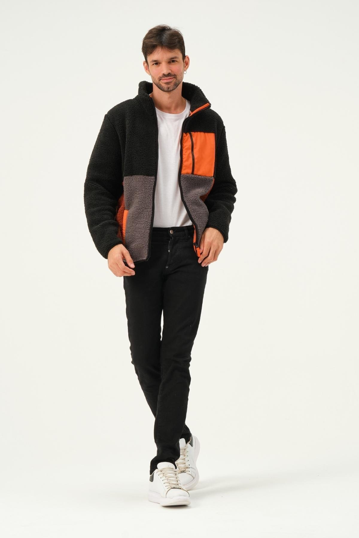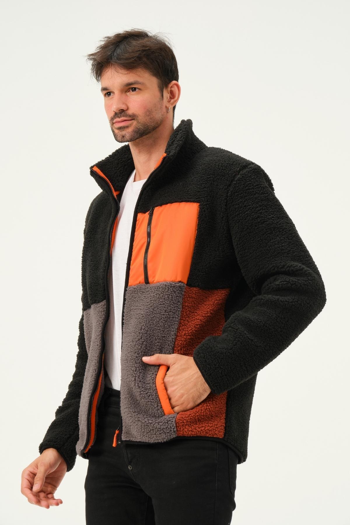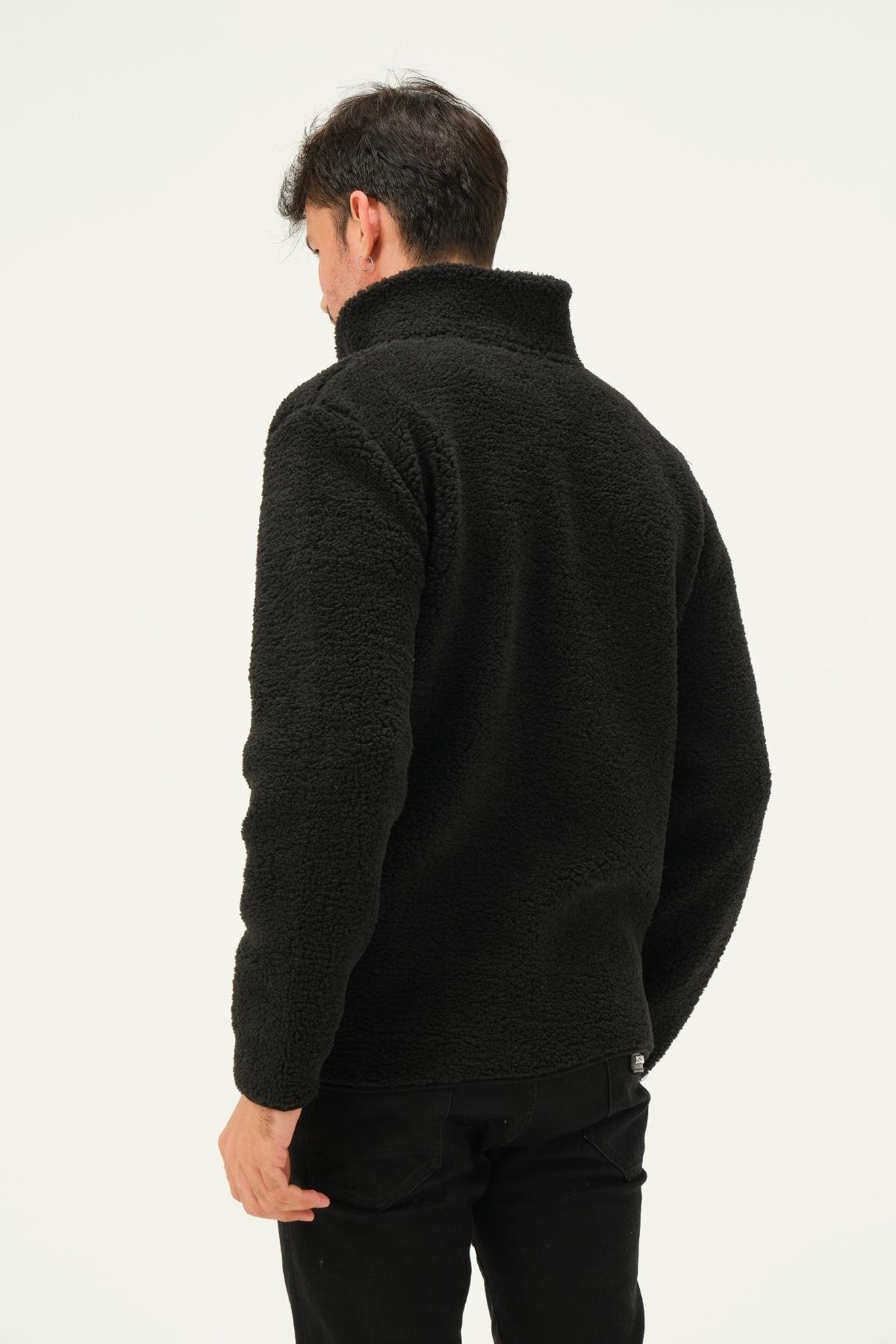 Erkek Fermuarlı Dik Yaka Parçalı Polar Ceket Siyah Erkek Fermuarlı Dik Yaka Parçalı Polar Ceket Siyah 472PLST 2XL