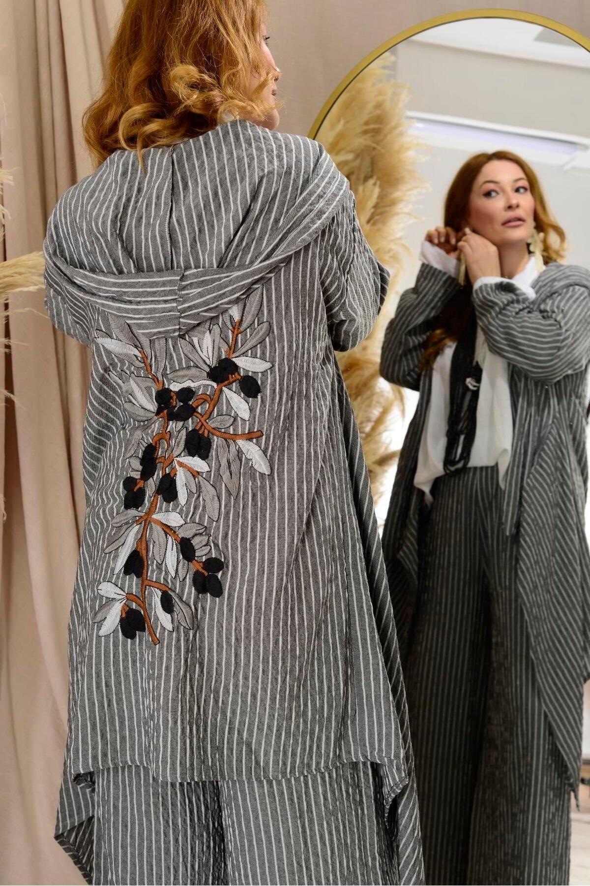 Keten Çizgili Arkası Zeytin Dalı Baskılı Takım Keten Çizgili Arkası Zeytin Dalı Baskılı Takım ERNSTYL-AN10489 Standart