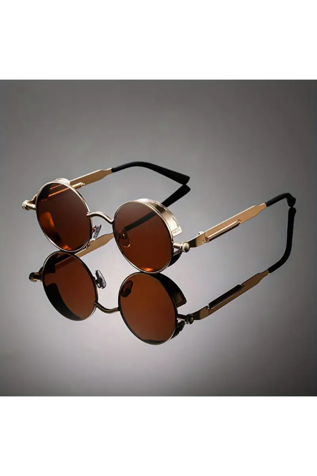 Steampunk Yuvarlak çerçeve Erkek Güneş Gözlüğü Hafif Barok Rock Punk Steampunk Yuvarlak çerçeve Erkek Güneş Gözlüğü Hafif Barok Rock Punk st5 تک سایز