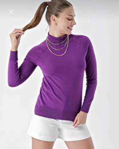 Kadın Tam Balıkçı Yaka Basic Triko Kazak Mor 24w102 Kadın Tam Balıkçı Yaka Basic Triko Kazak Mor 24w102 24W102 XL